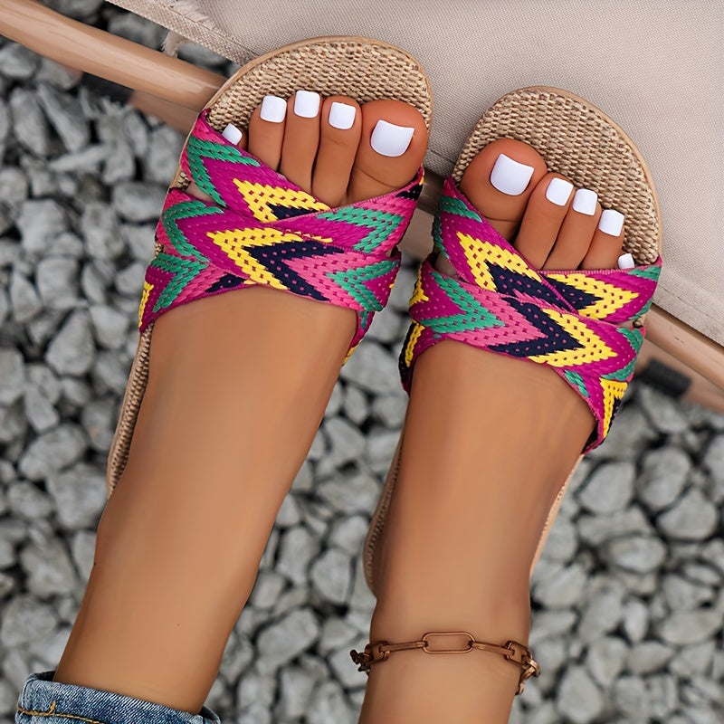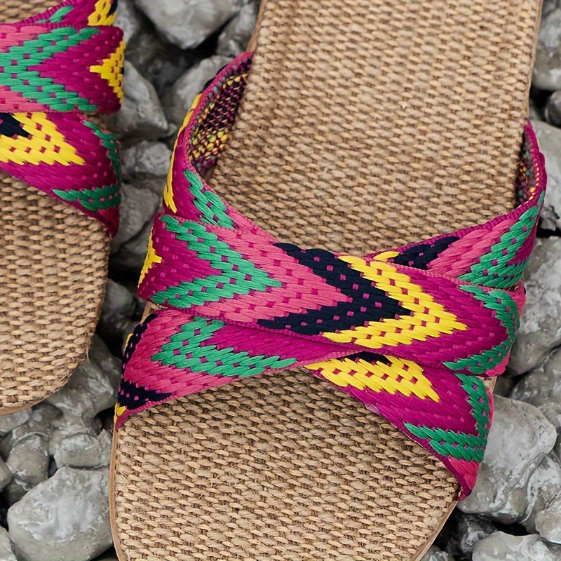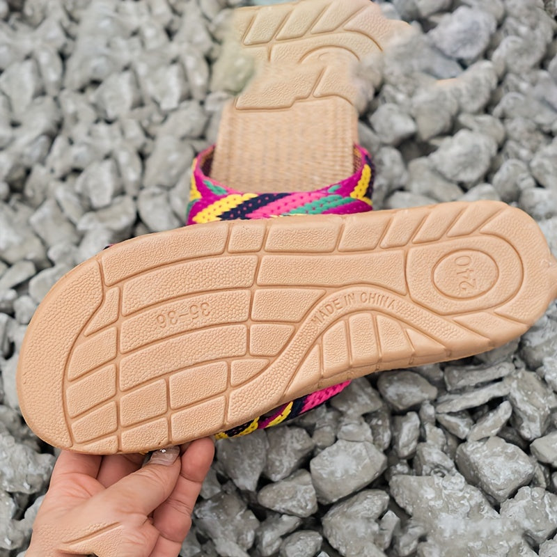 Letnie kapcie damskie - kolorowe, oddychające kapcie z lnianą podeszwą, antypoślizgowe