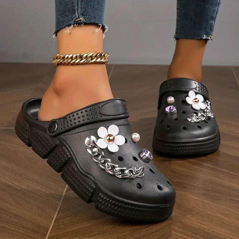 Chodaki z dekoracją z kwiatów i dżetów