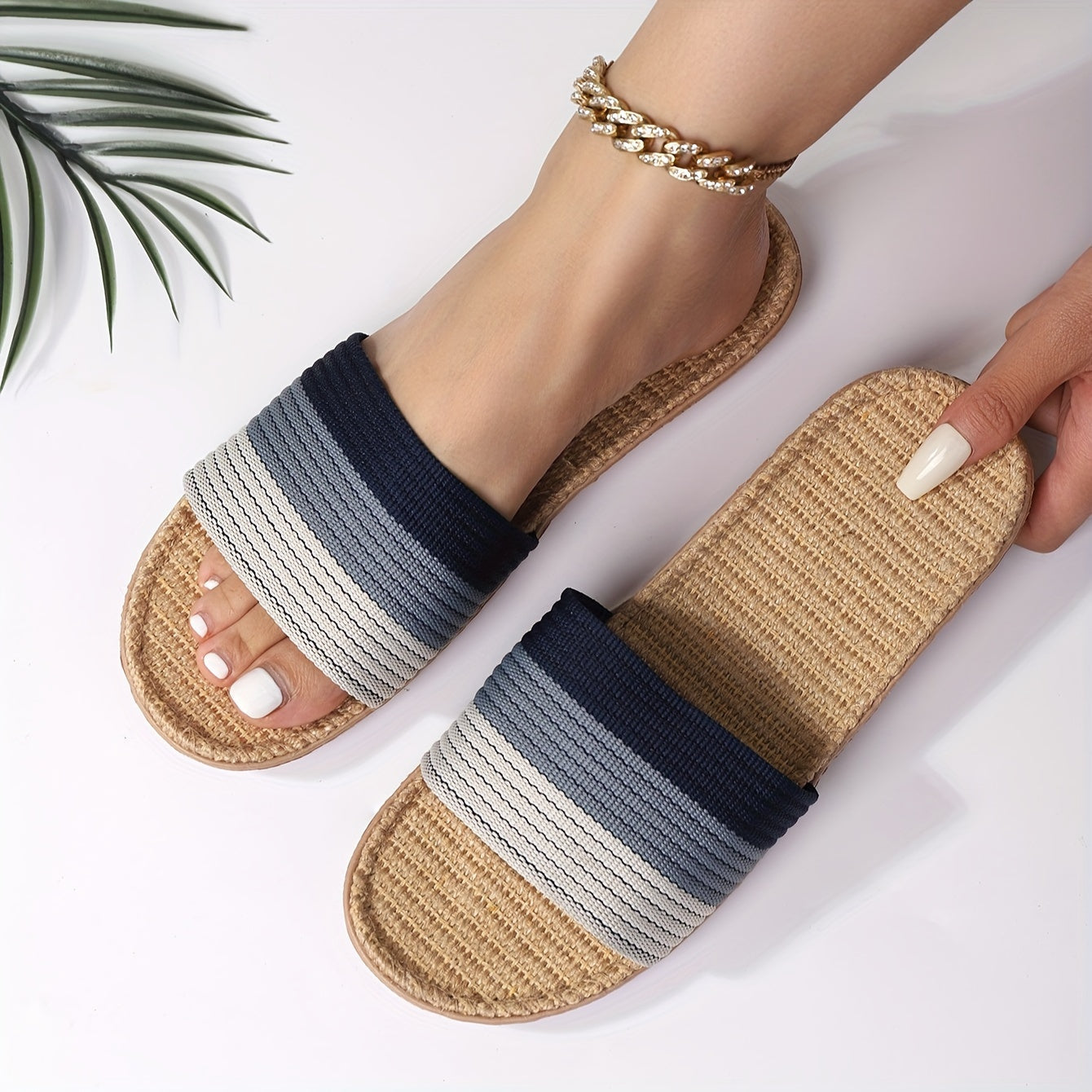 Letnie kapcie damskie - Lekkie, antypoślizgowe kapcie z kolorowymi paskami