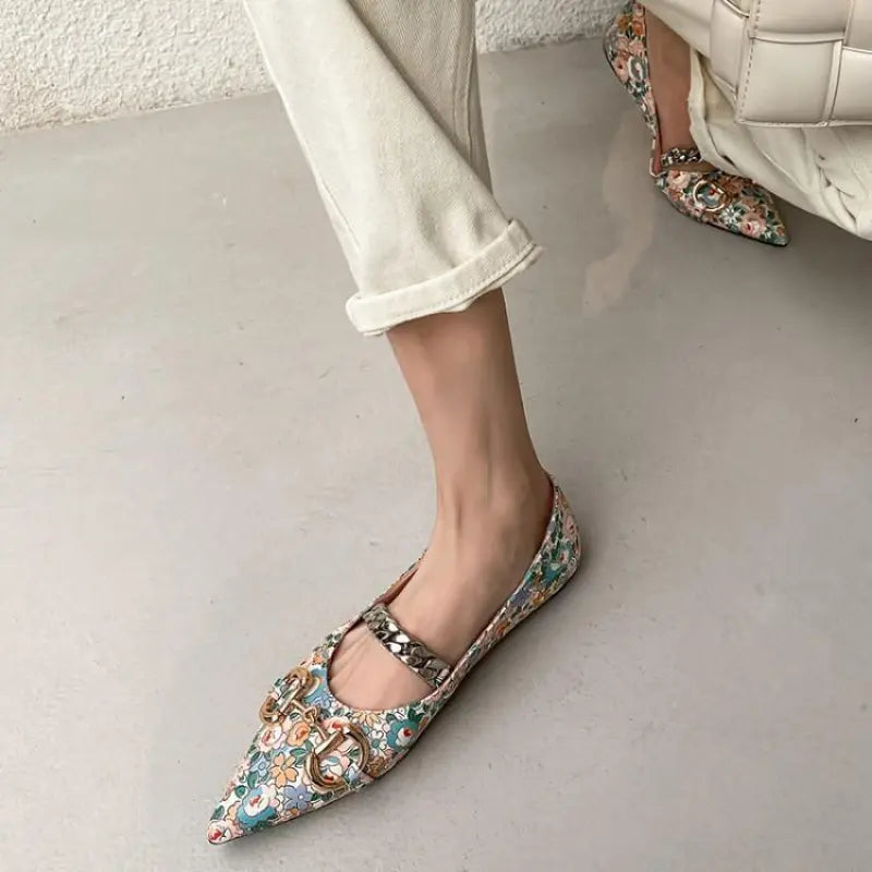 Baleriny z kolorowym nadrukiem, ze szpiczastym noskiem