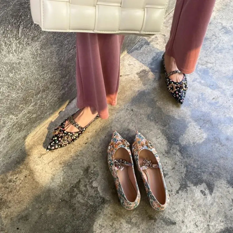 Przedstawiamy nasze kolorowe balerinki dla kobiet, stanowiące idealne połączenie żywego stylu i codziennej wygody. Te codzienne wsuwane buty mają elegancki nosek w szpic i kolorowy nadruk, który doda charakteru każdemu strojowi. Są lekkie i zapewniają wygodę przez cały dzień. Niezależnie od tego, czy załatwiasz sprawy, czy spotykasz się z przyjaciółmi na brunch, te wszechstronne buty na płaskim obcasie poprawią Twój wygląd dzięki eleganckiemu i zabawnemu designowi. Wyjdź stylowo i wyraź siebie dzięki tym balerinkom z kolorowym nadrukiem.