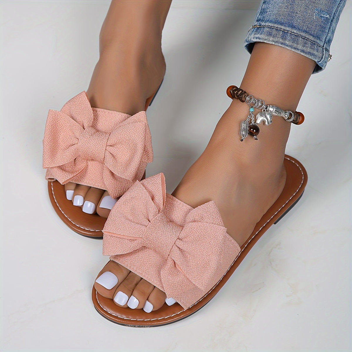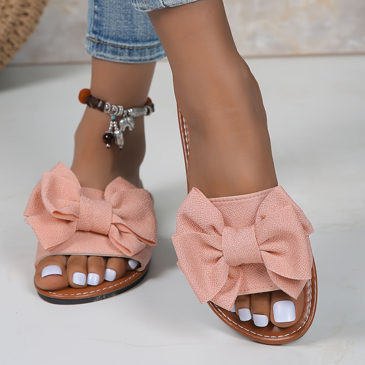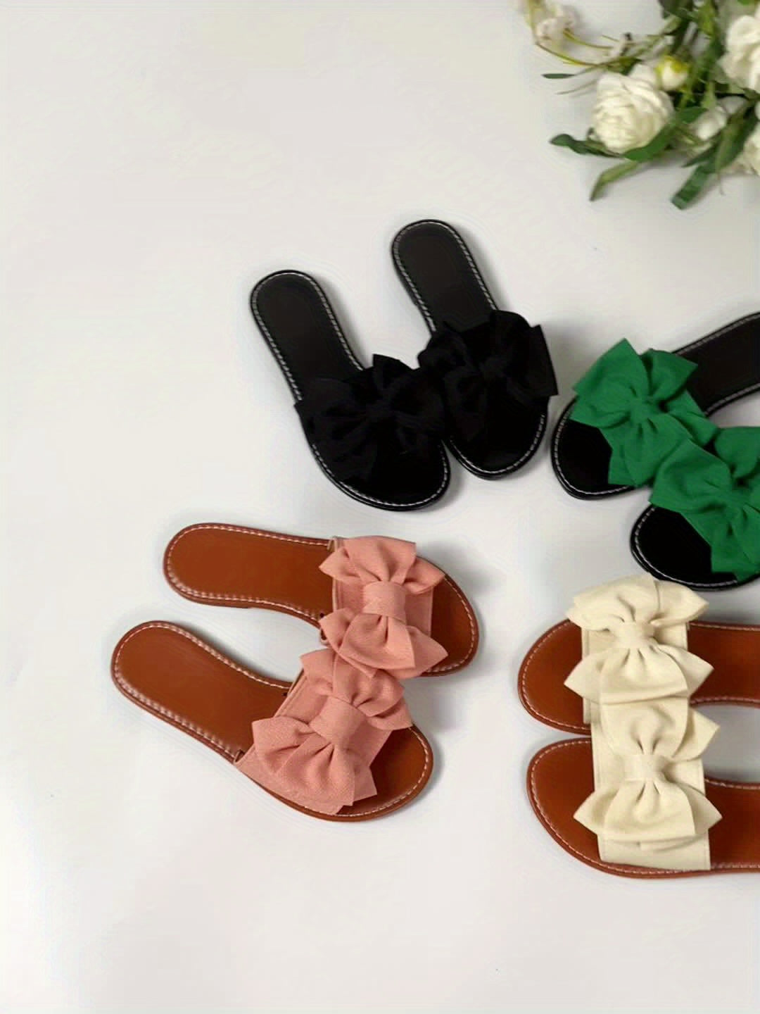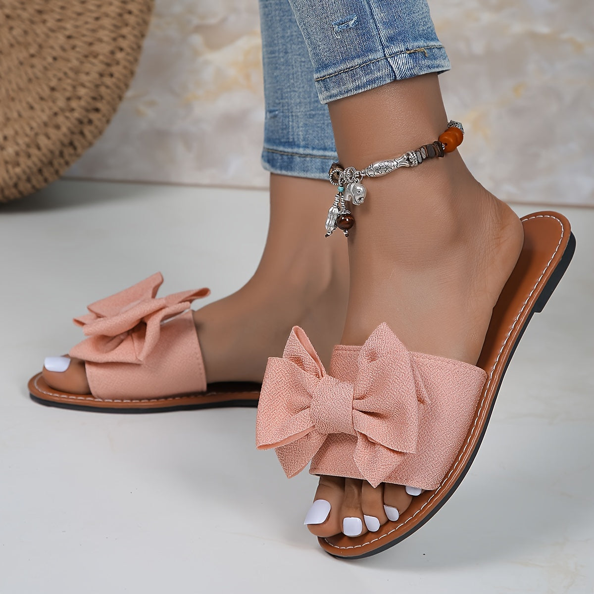 Letnie kapcie damskie - Lekkie płaskie sandały z kokardką