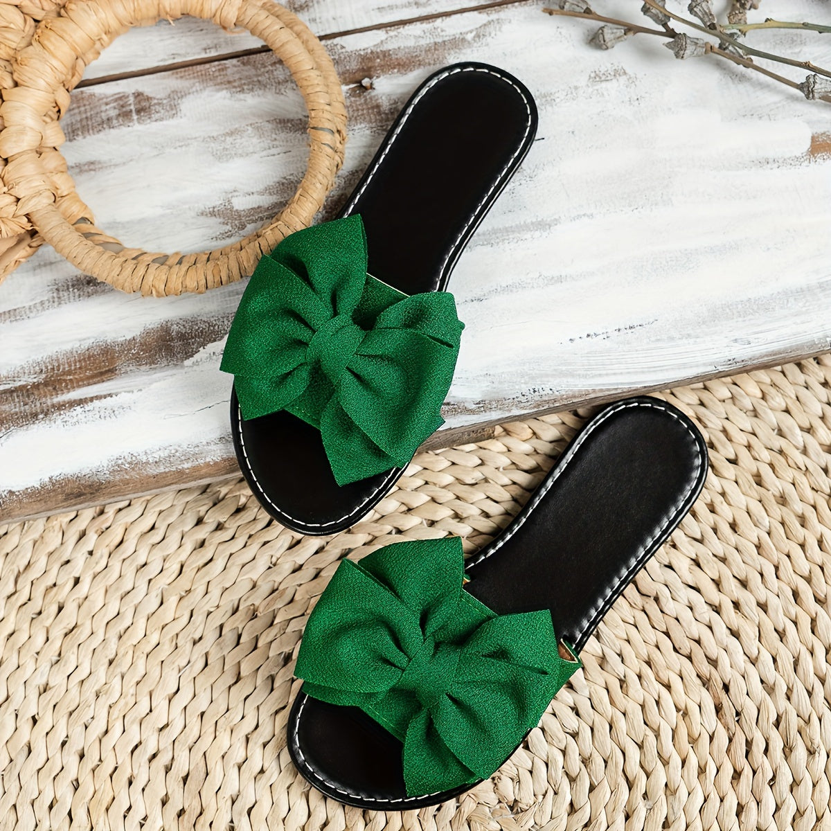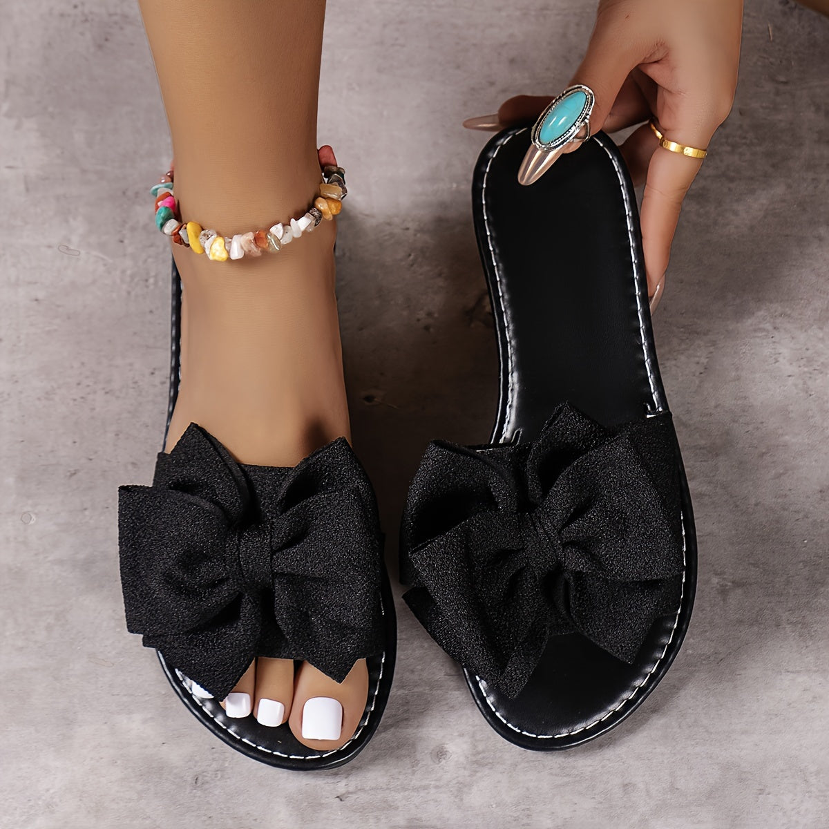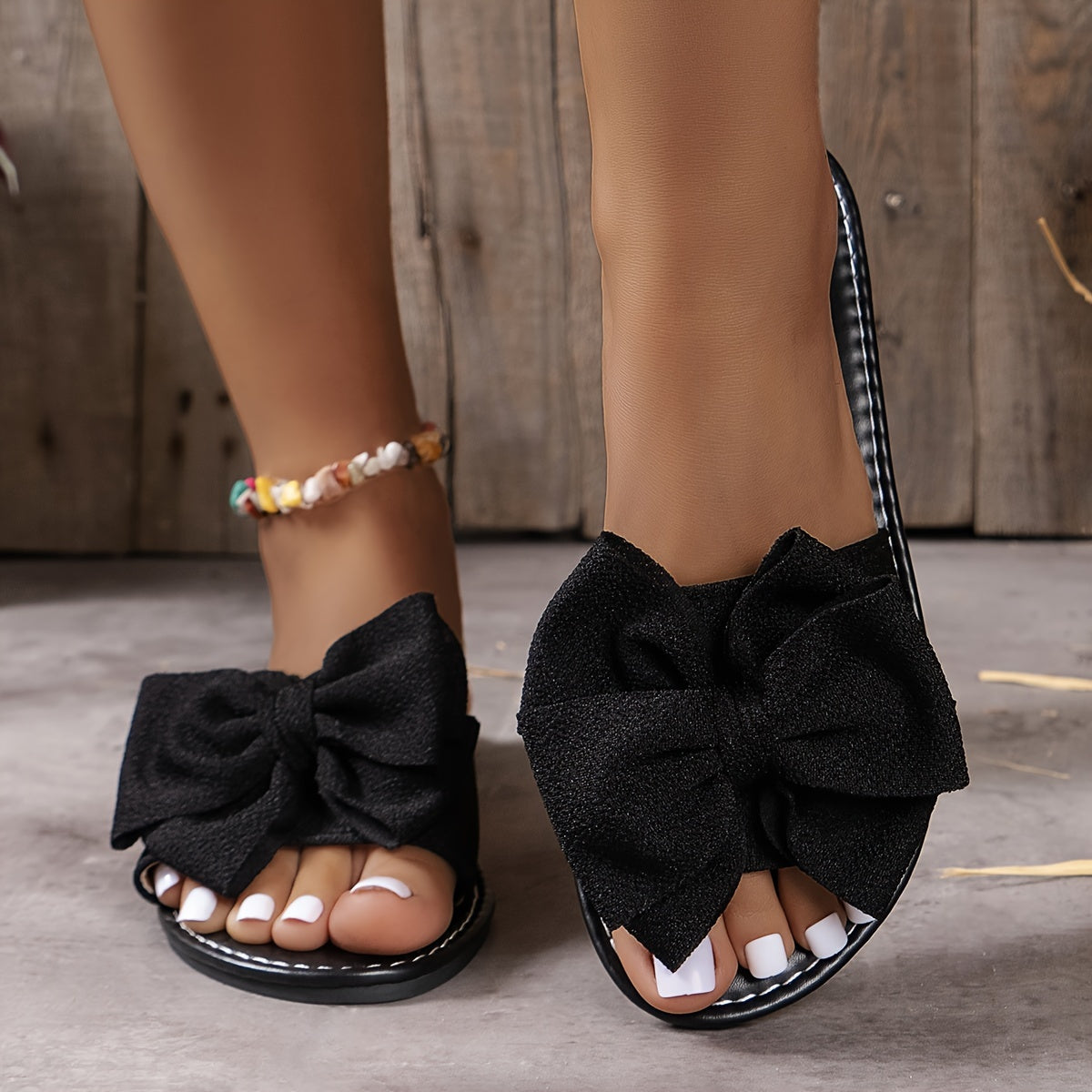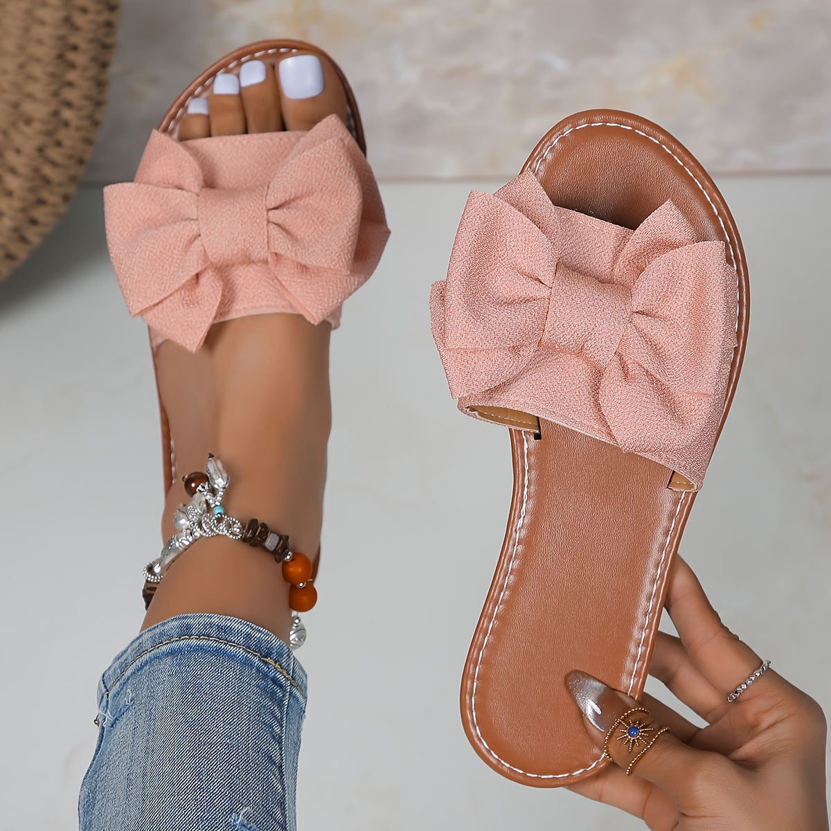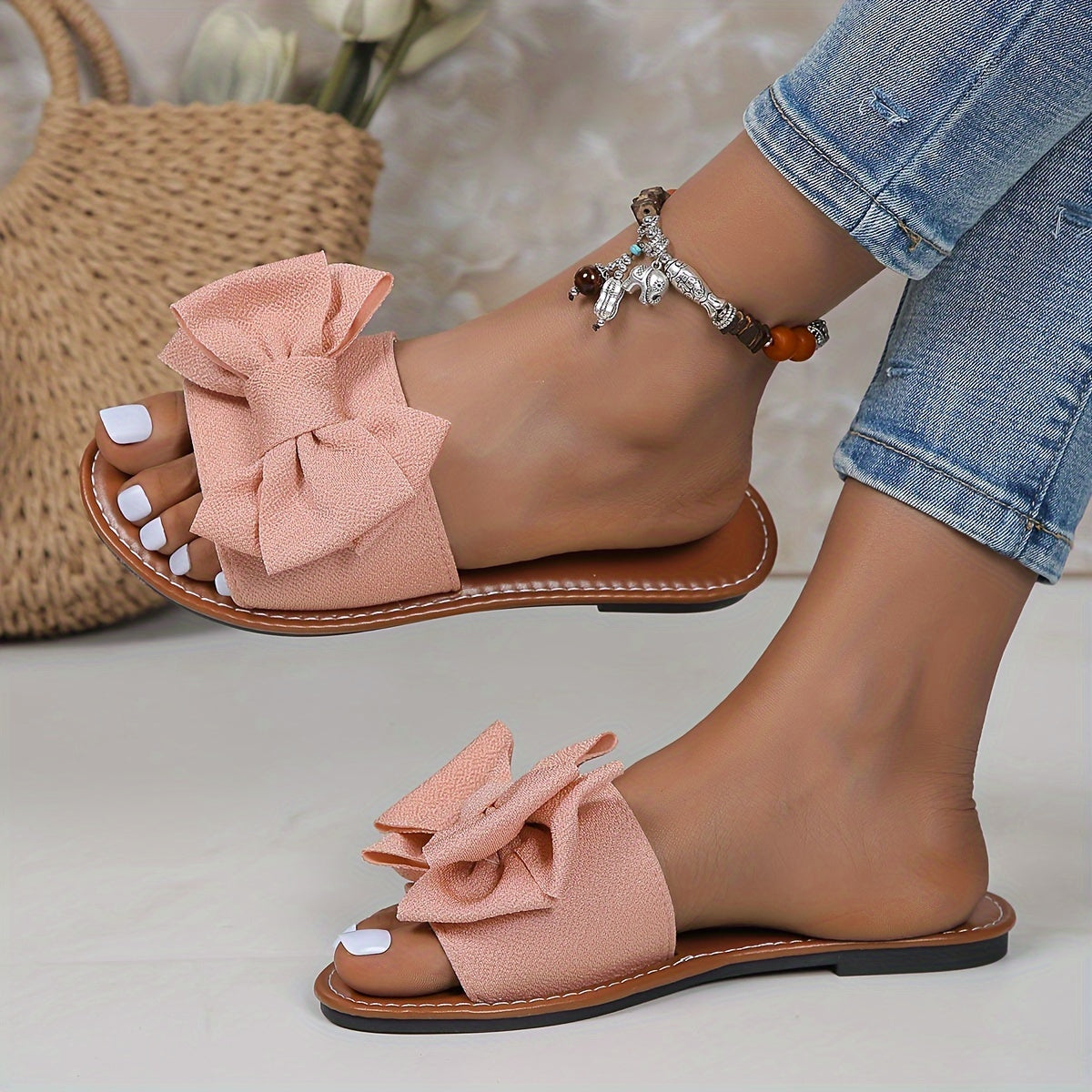 Letnie kapcie damskie - Lekkie płaskie sandały z kokardką