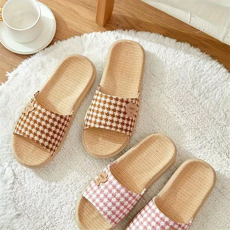 Letnie kapcie damskie - Lekkie, oddychające kapcie płócienne z antypoślizgową podeszwą.