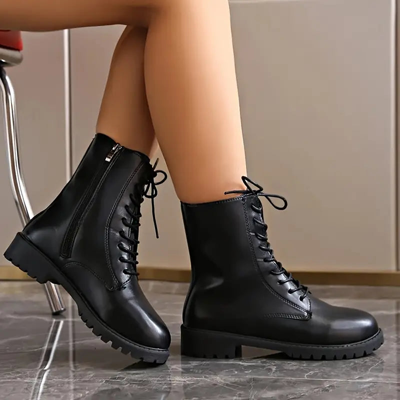 Zimowe buty damskie - antypoślizgowe buty średniej wysokości z pluszową podszewką