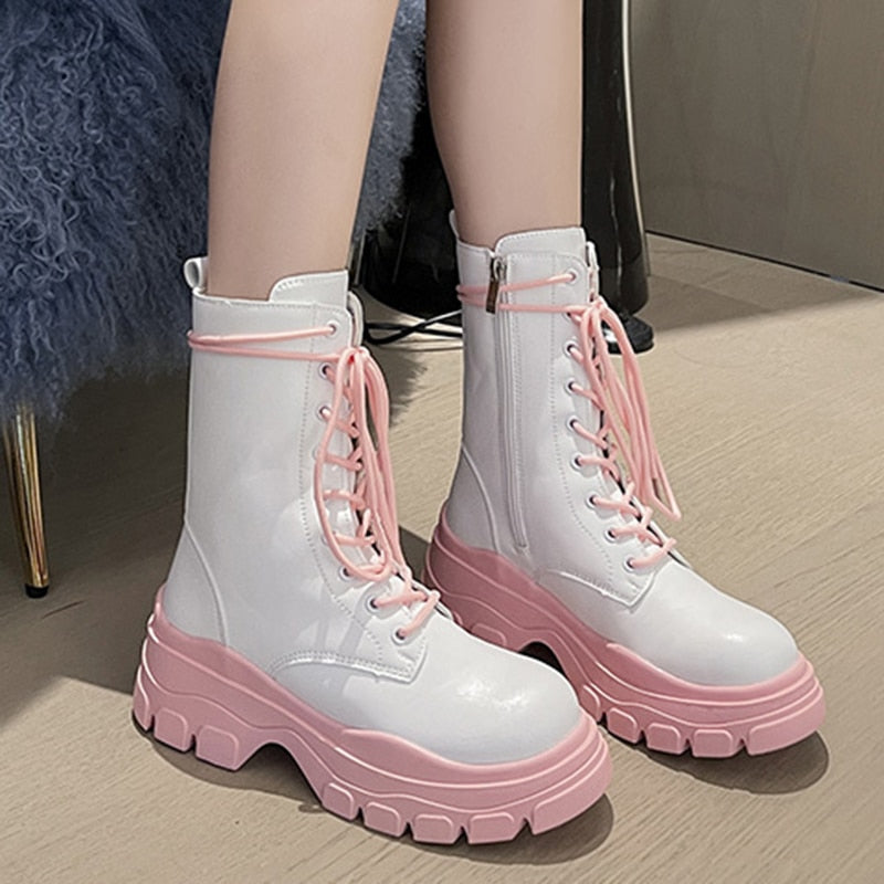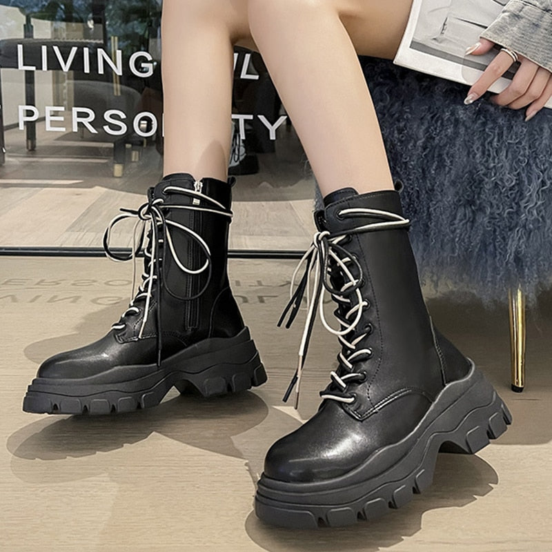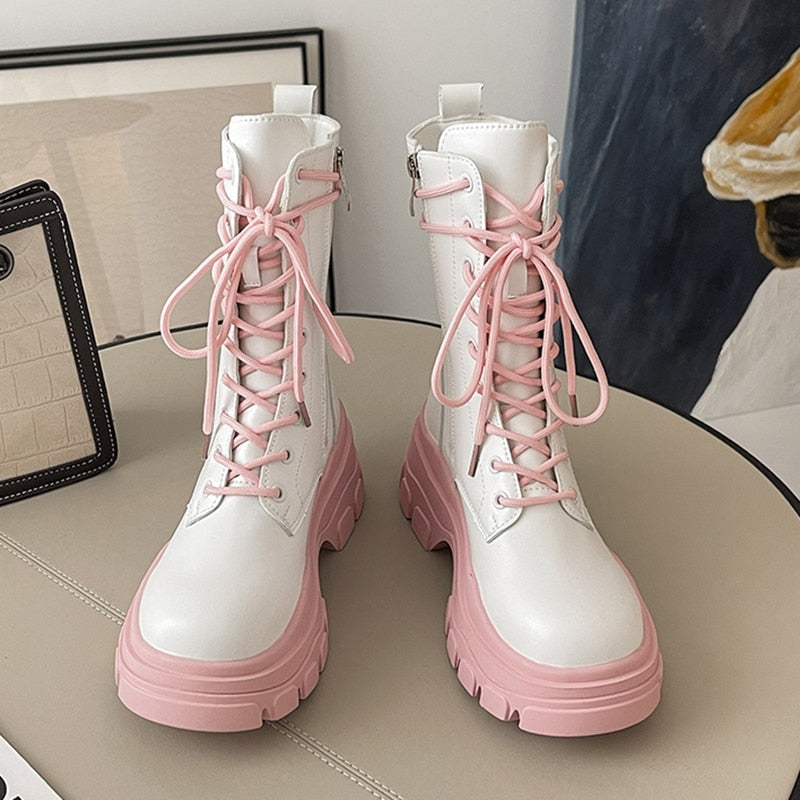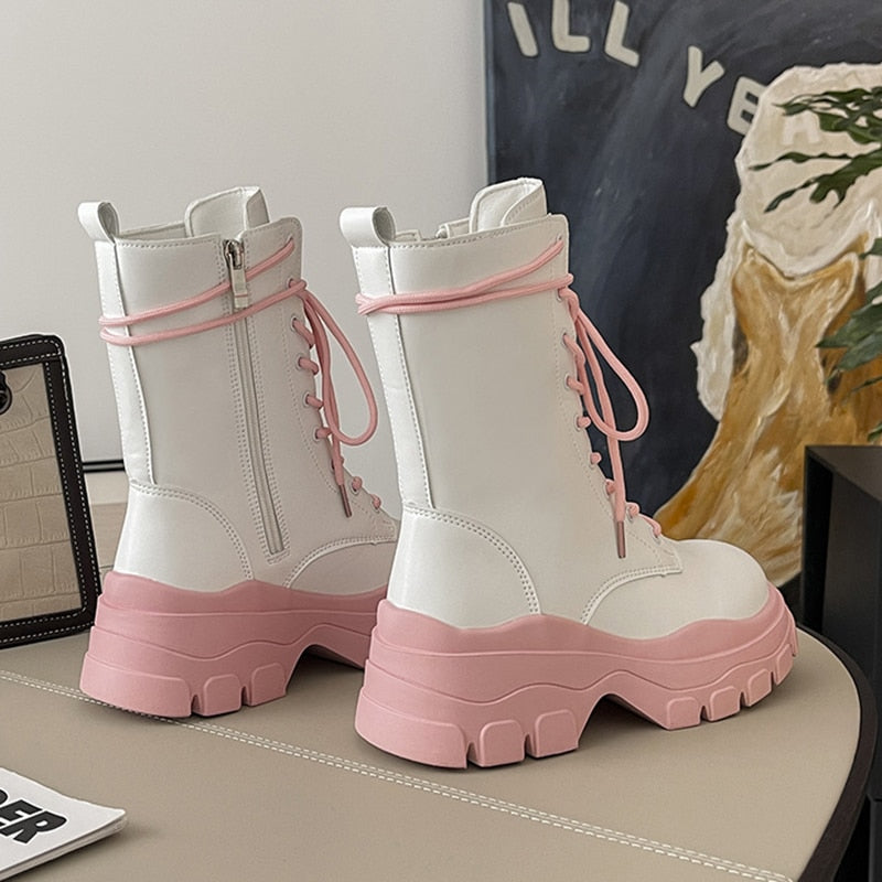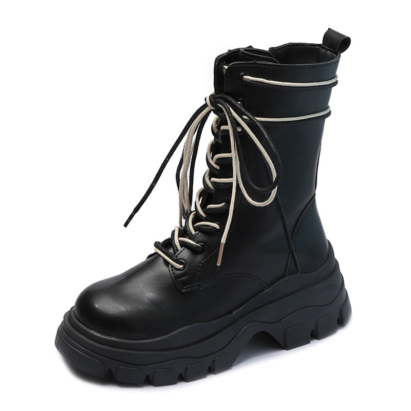 Modne damskie buty typu "combat boots" to idealna propozycja dla kobiet ceniących miejski styl i oryginalność. Wydłużona cholewka zapewnia wsparcie dla kostki i nadaje wyjątkowy charakter. Gruba, profilowana podeszwa oferuje doskonałą przyczepność, a także jest trendem modowym obecnym w wielu stylizacjach. Buty wyposażone są w funkcjonalny zamek błyskawiczny z boku, który ułatwia zakładanie i zdejmowanie, a także sznurowadła, które pozwalają na idealne dopasowanie. Obuwie wykonane jest z trwałego materiału, co gwarantuje długotrwałe użytkowanie. Są one zarówno stylowe, jak i praktyczne, co sprawia, że świetnie komponują się z różnorodnymi codziennymi ubraniami, a ich niezwykły design z pewnością przyciągnie uwagę i doda charakteru każdej stylizacji.