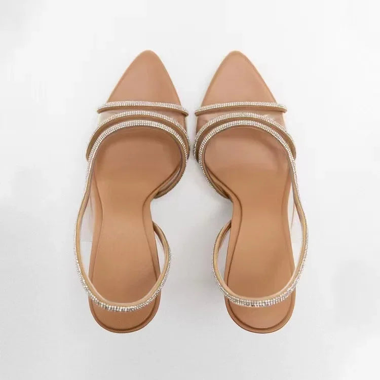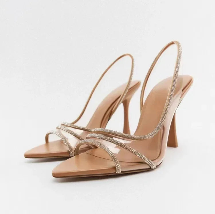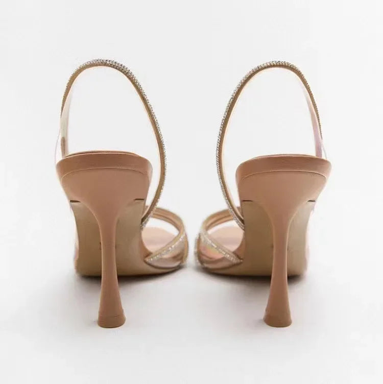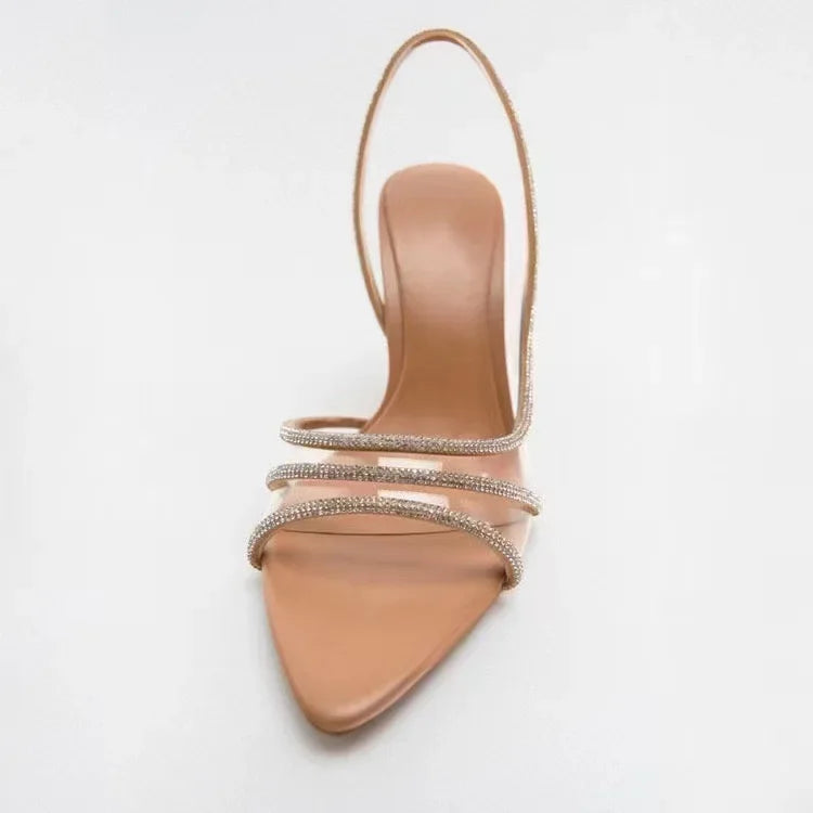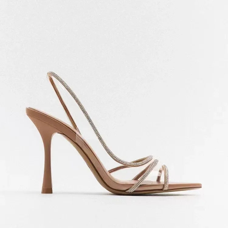 Damskie Eleganckie Sandały na Obcasie z Kryształowymi Paskami
