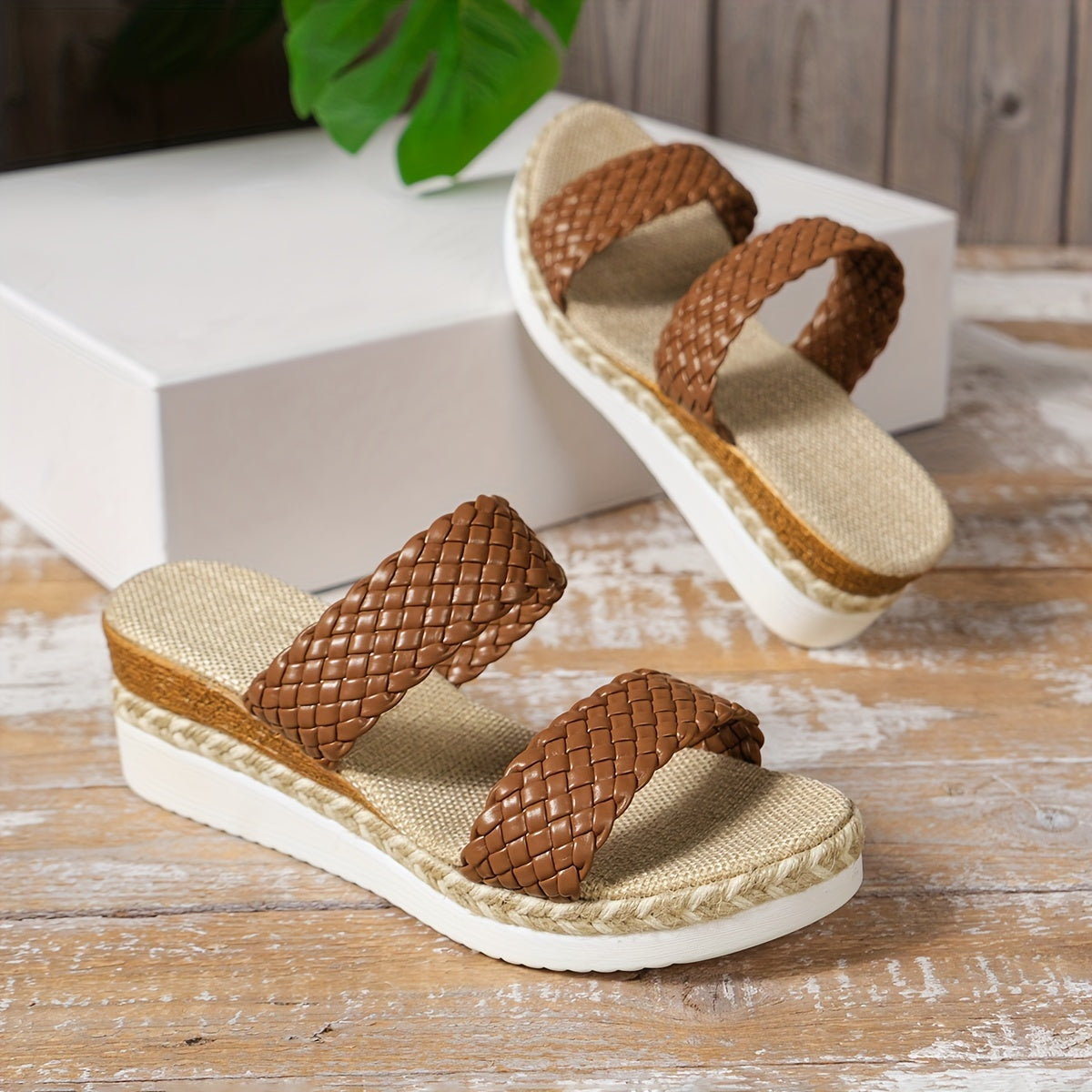 Damskie sandały na platformie, plecione paski, wsuwane, wygodne