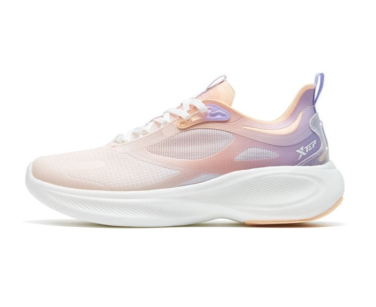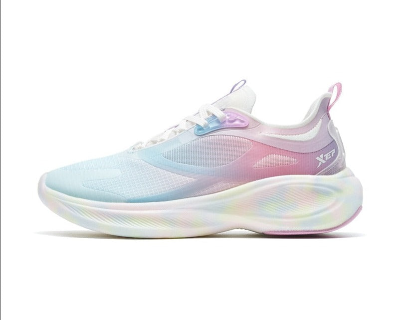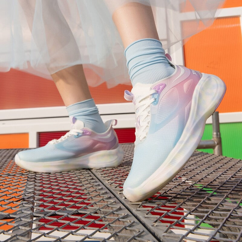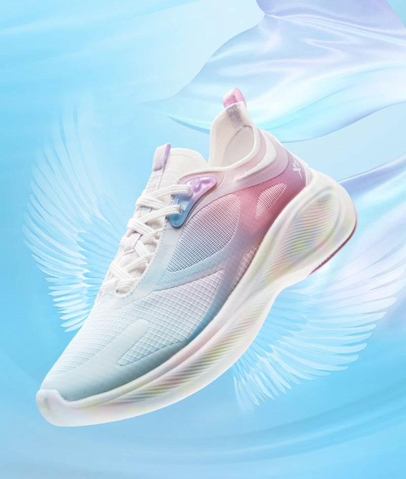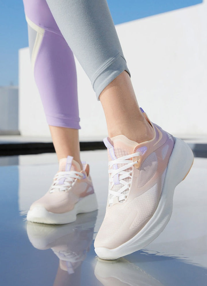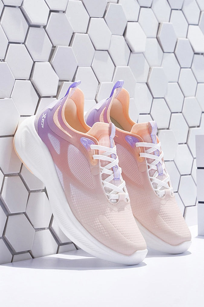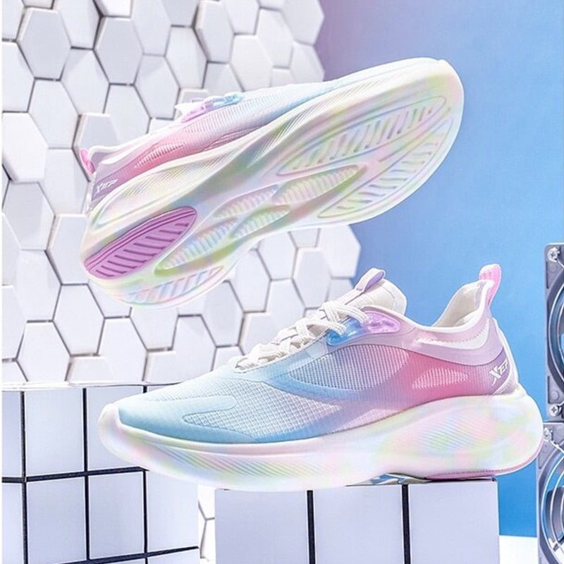 Te ultranowoczesne damskie sneakersy do biegania łączą w sobie zaawansowaną technologię i stylowy wygląd. Cholewka buta z siateczki zapewnia maksymalną przewiewność, a kolorowy gradient dodaje modnego charakteru. Dynamiczna podeszwa zwiększa elastyczność i amortyzację, co minimalizuje ryzyko urazów podczas biegania. Specjalne pętelki ułatwiają zakładanie i ściąganie butów, a miękka wyściółka gwarantuje komfort nawet podczas długich sesji treningowych. Idealne dla aktywnych kobiet, które cenią sobie połączenie funkcji i modnego designu w swoim sprzęcie do biegania.