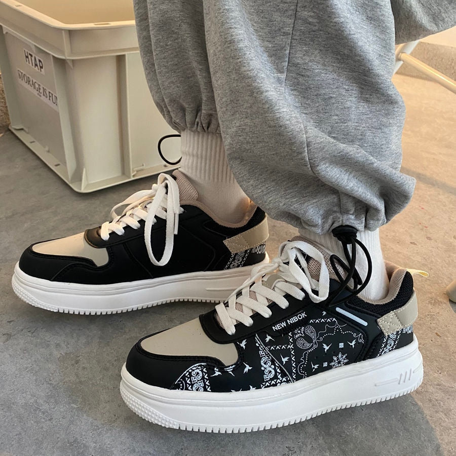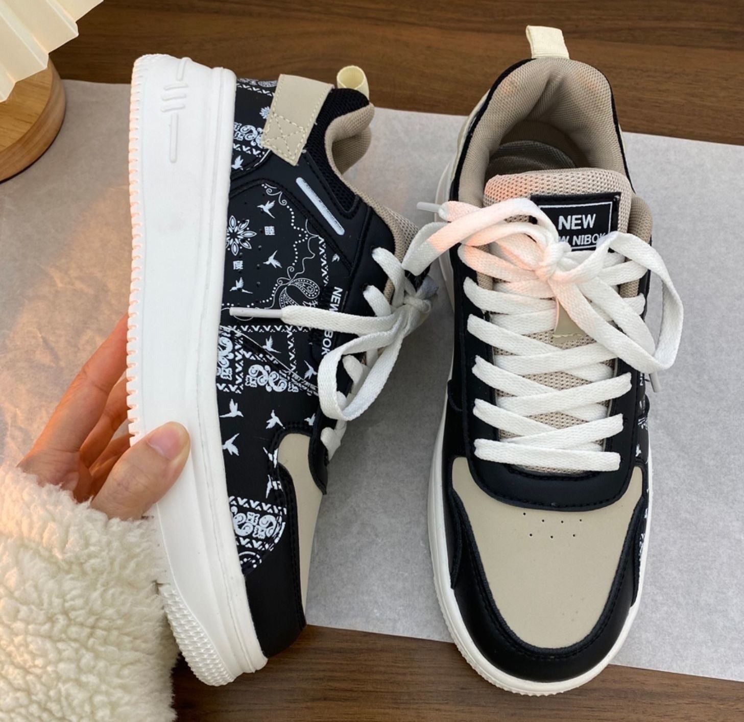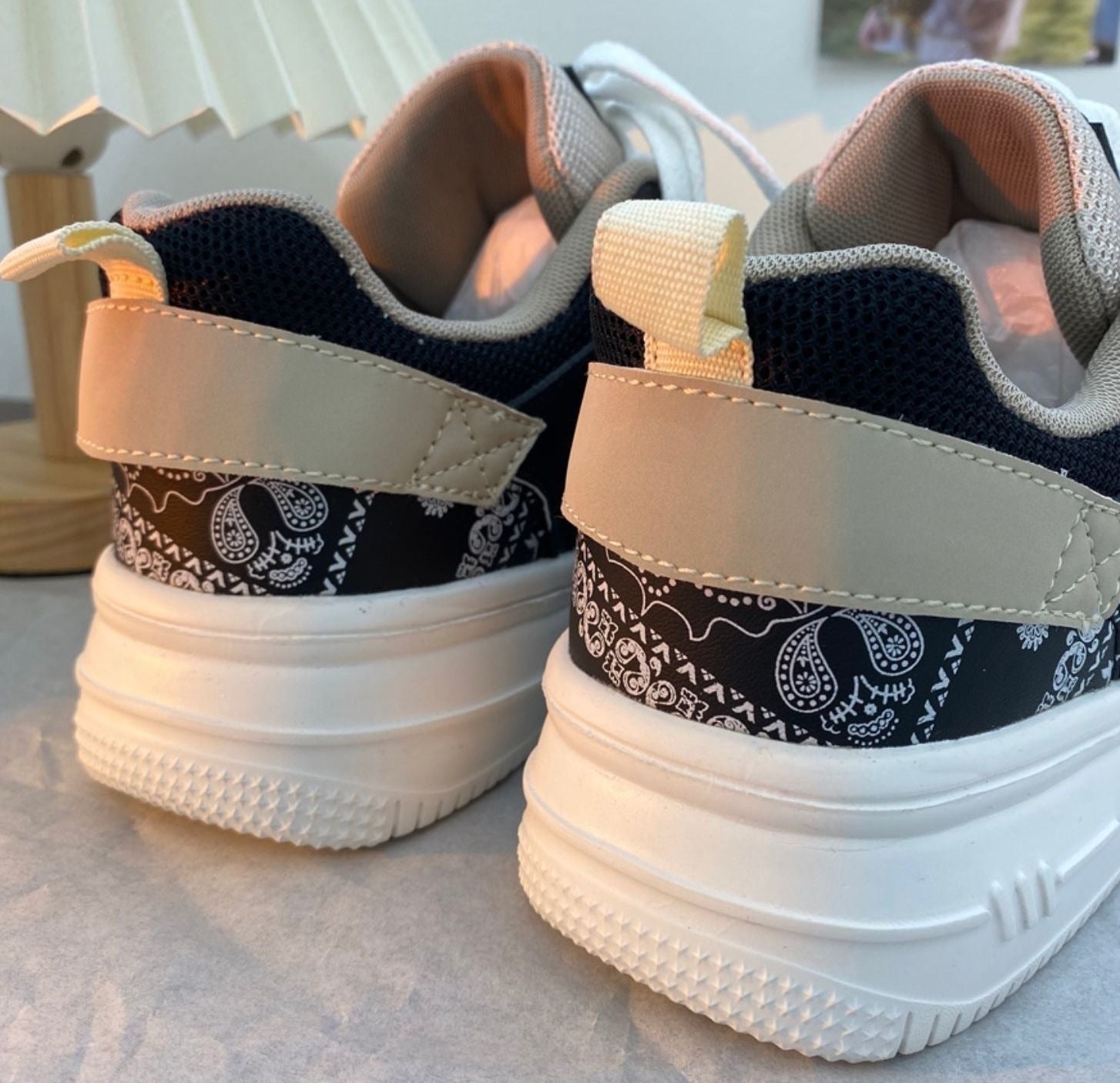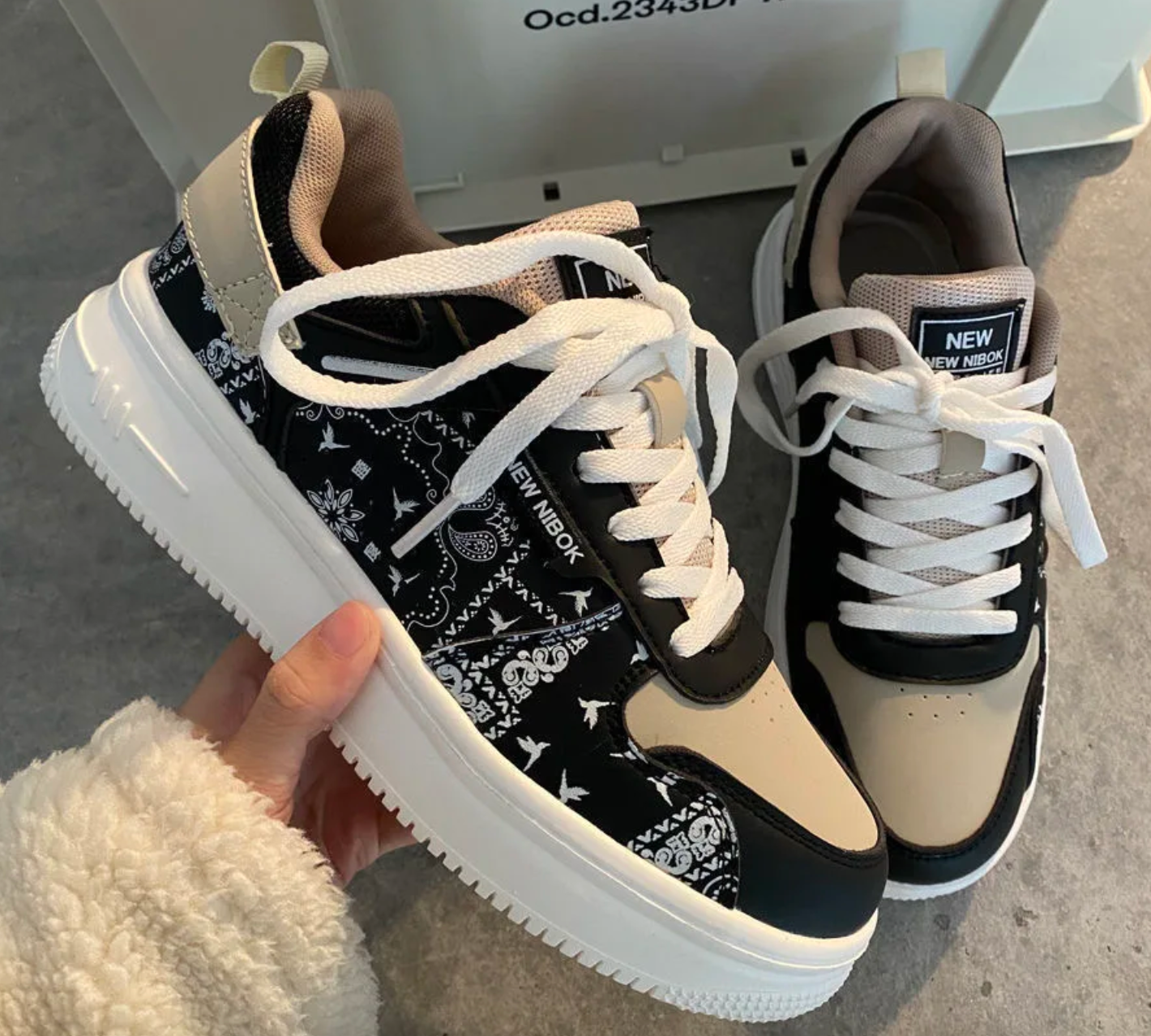 Damskie Sneakersy z Kontrastowymi Wzorami i Grubą Podeszwą