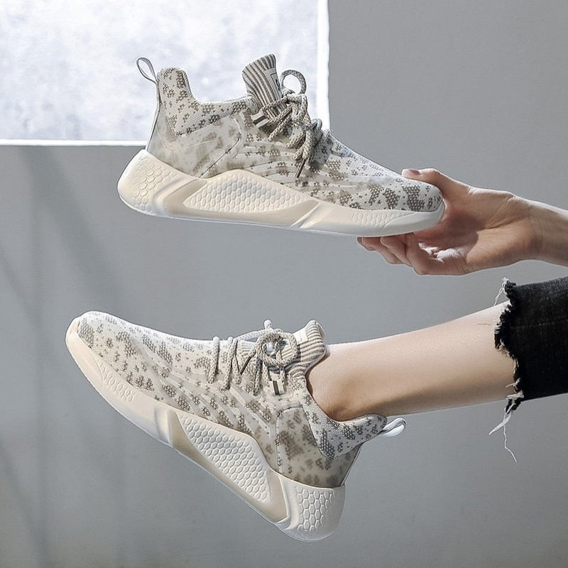 Te damskie sneakersy łączą w sobie modny wzór w stylu camo z nowoczesnym designem. Lekka i oddychająca cholewka zapewnia komfort nawet podczas długotrwałego noszenia, a elastyczna podeszwa dostosowuje się do ruchów stopy, zapewniając doskonałą amortyzację. Sznurowadła w tonacji dopasowanej do butów umożliwiają precyzyjne dopasowanie, a miękki język i kołnierz dodają komfortu. Te sneakersy są doskonałe dla aktywnych kobiet, które cenią sobie połączenie funkcjonalności z modnym wyglądem.