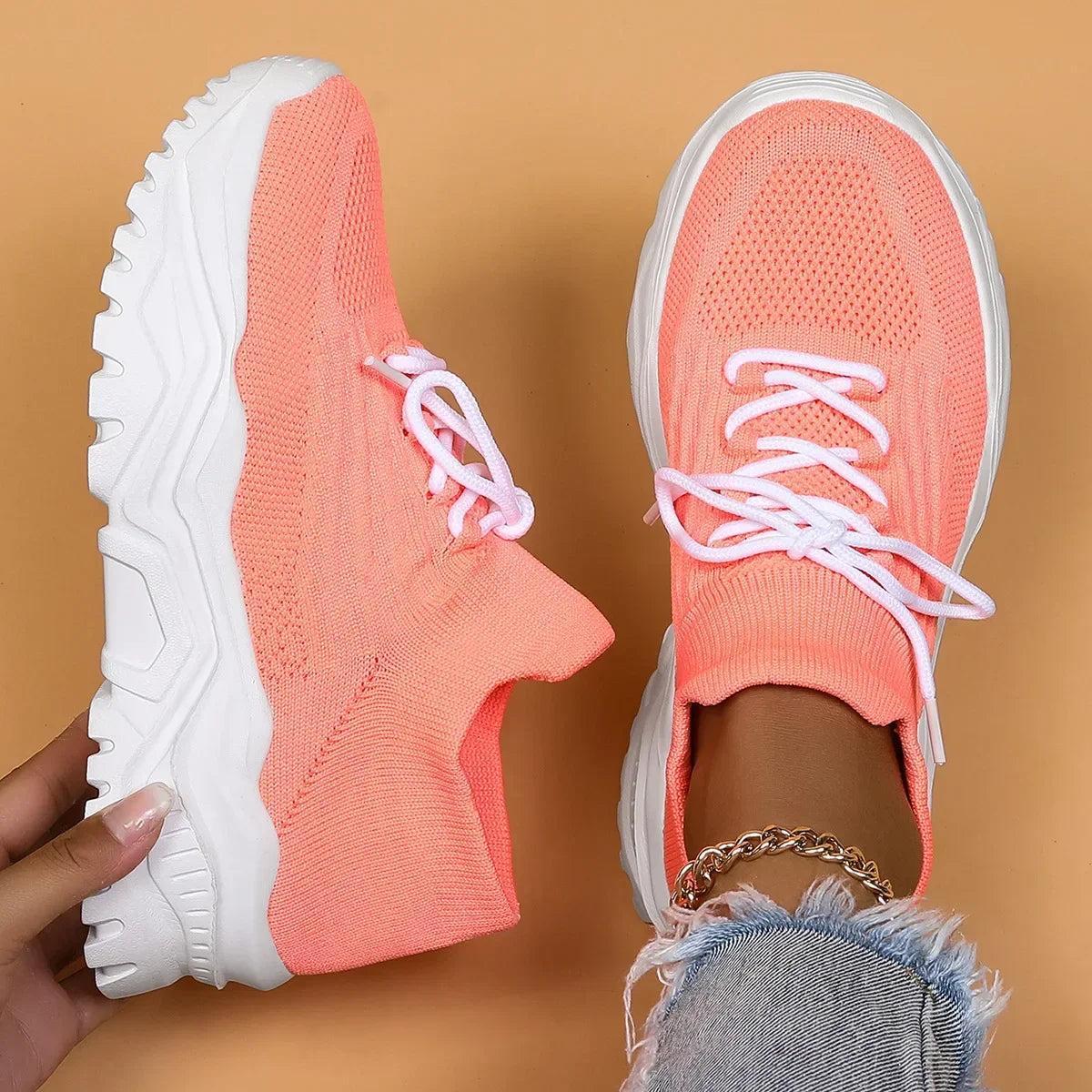 Nowoczesne damskie buty sportowe na grubej podeszwie to połączenie stylu i wygody, które doskonale sprawdzi się w codziennych stylizacjach. Elastyczna, przewiewna cholewka dopasowuje się do kształtu stopy, zapewniając komfort noszenia przez cały dzień. Gruba, wyprofilowana podeszwa gwarantuje doskonałą amortyzację i stabilność, co czyni je idealnym wyborem na miejskie spacery i aktywny tryb życia.