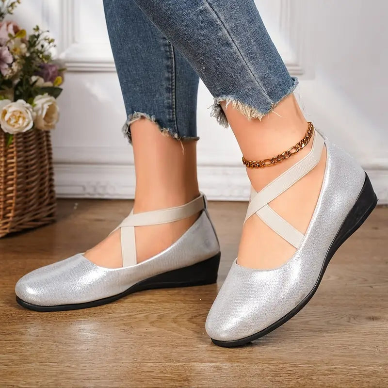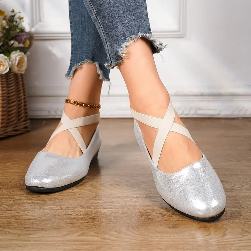 Odkryj wygodę i styl dzięki tym elastycznym, krzyżującym się paskom. Okrągły nosek i lekka konstrukcja sprawiają, że buty te są idealne do noszenia na co dzień. Elastyczne paski krzyżowe zapewniają bezpieczne dopasowanie i dodają odrobinę nowoczesnego stylu do klasycznej sylwetki. Miękka podeszwa zapewnia wygodę i wsparcie przez cały dzień. Można je łączyć zarówno z casualowymi, jak i półformalnymi strojami i są wystarczająco uniwersalne na różne okazje. Doświadcz elegancji bez wysiłku dzięki tym niezbędnym wygodnym baletkom.