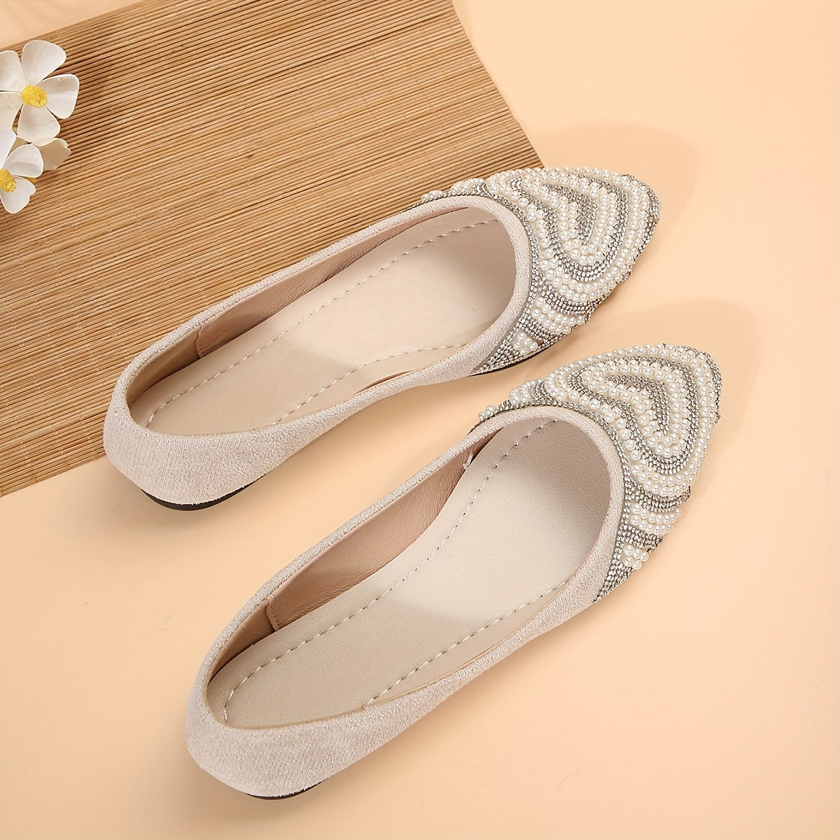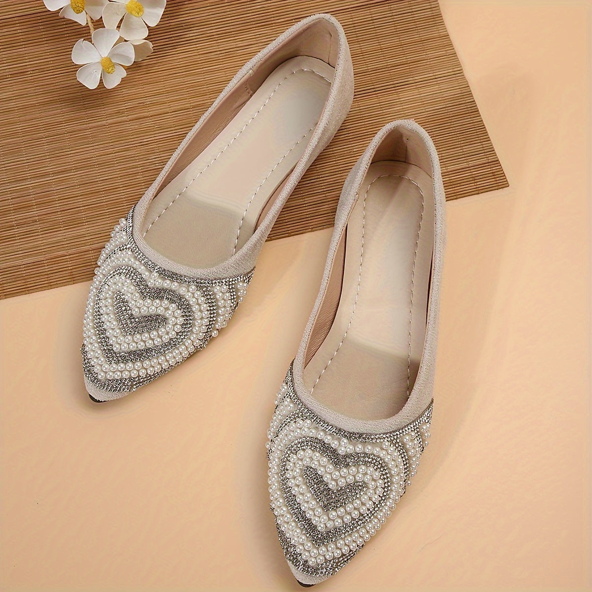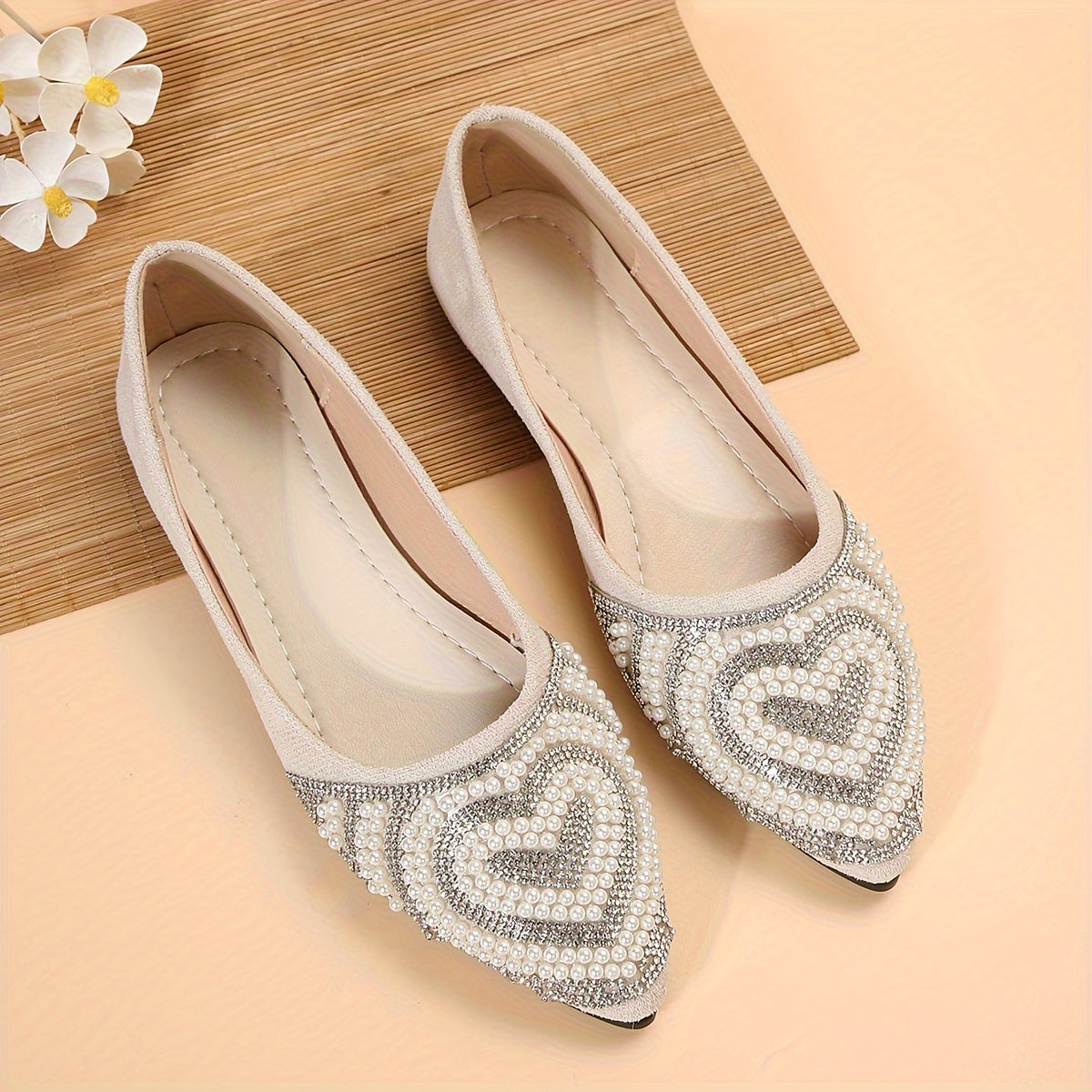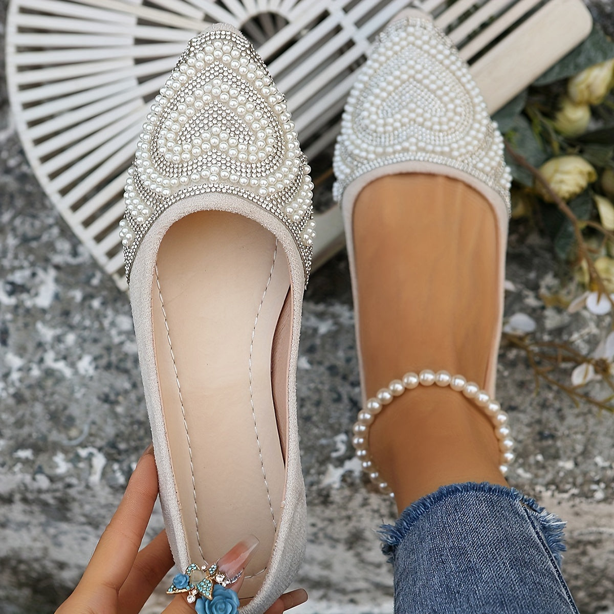 Chic Damen Slip-On Flats mit Herz-Pearl & Strass, Elegante Sommer Flats
