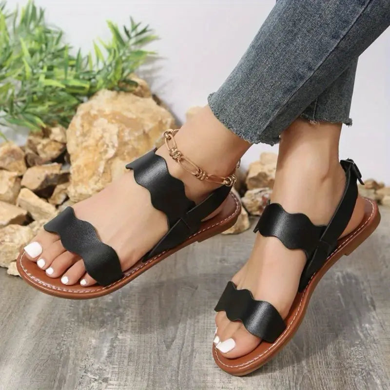 Odkryj nasze letnie skórzane płaskie sandały z wygodnym okrągłym odkrytym palcem, dostępne w dwóch ponadczasowych kolorach. Wykonane z prawdziwej skóry, te sandały łączą trwałość z elegancją, zapewniając najlepsze letnie obuwie, z wygodnym okrągłym odkrytym palcem i wyściełaną wkładką zapewniającą całodzienny komfort i styl. Niezależnie od tego, czy spacerujesz po promenadzie, czy cieszysz się weekendowym brunchem, nasze skórzane płaskie sandały to Twój wybór. Ciesz się sezonem w obuwiu, które łączy klasyczny urok z nowoczesnym komfortem, zapewniając rozpoczęcie lata z pewnością siebie i łatwością.z