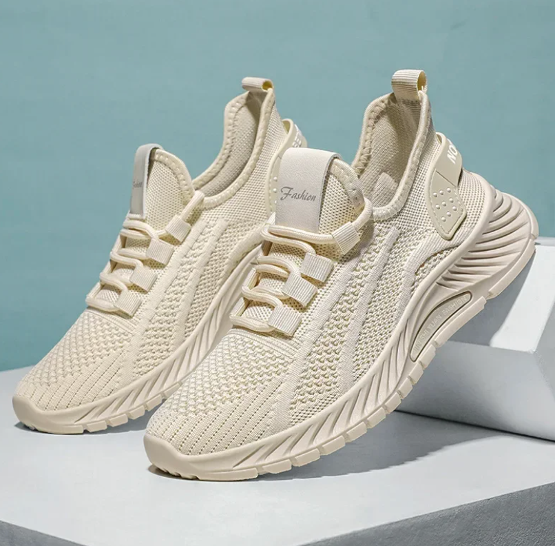 Te wyrafinowane damskie sneakersy slip-on charakteryzują się elegancką, beżową kolorystyką, która doskonale współgra z każdym strojem. Łączą w sobie wygodę butów wsuwanych z dynamicznym wyglądem sportowych sneakersów. Siateczkowa cholewka gwarantuje doskonałą przewiewność, a elastyczne paski zamiast tradycyjnych sznurowadła zapewniają łatwość zakładania i wyjątkowe dopasowanie. Miękka wkładka i elastyczna podeszwa zwiększają komfort użytkowania. Buty są praktyczne, stylowe i idealne dla kobiet ceniących sobie połączenie wygody i subtelnego stylu.