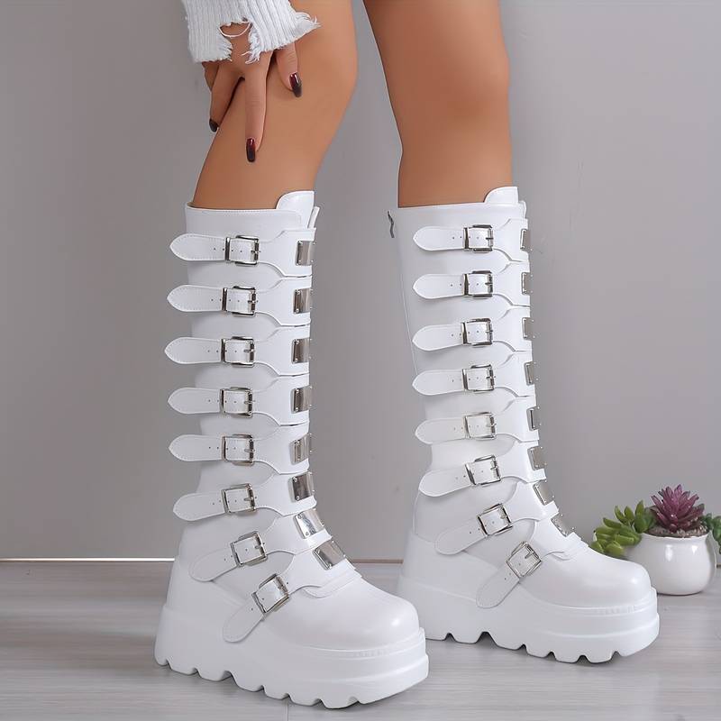 Manina - Modne botki na platformie z paskami na klamrę