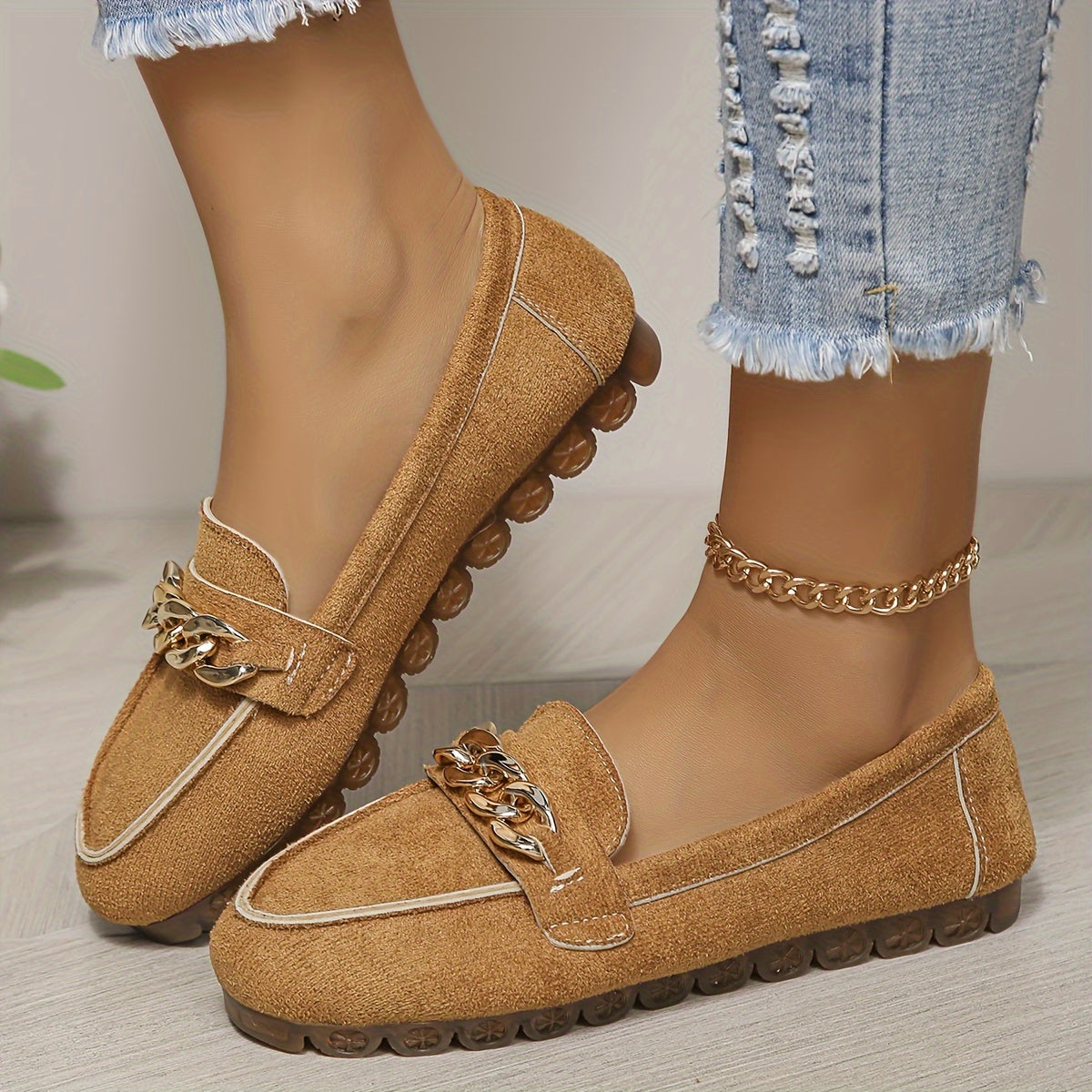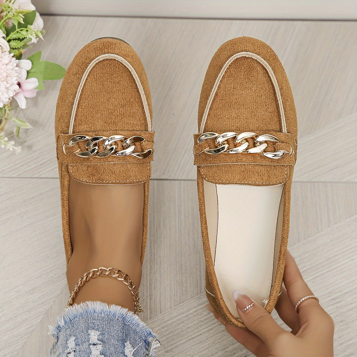 Ponadgabarytowy loafers dla kobiet z metalicznym łańcuszkiem