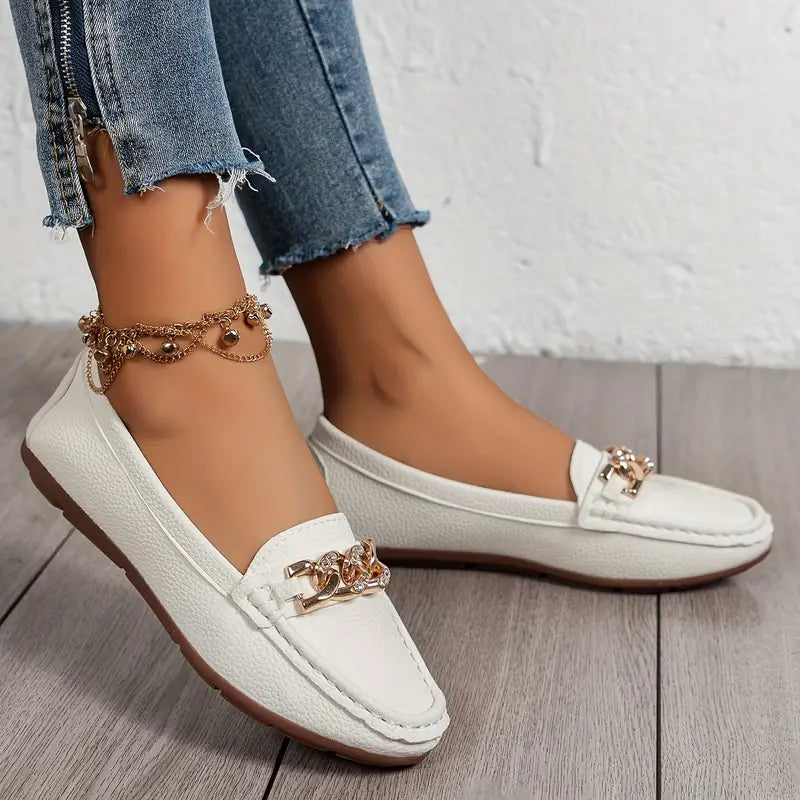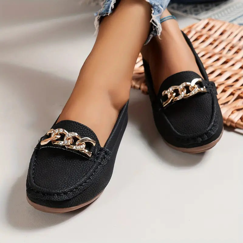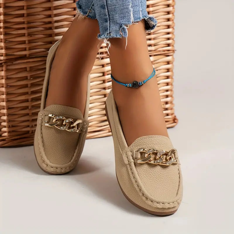 Casualowe mokasyny z łańcuszkiem z kryształkami górskimi