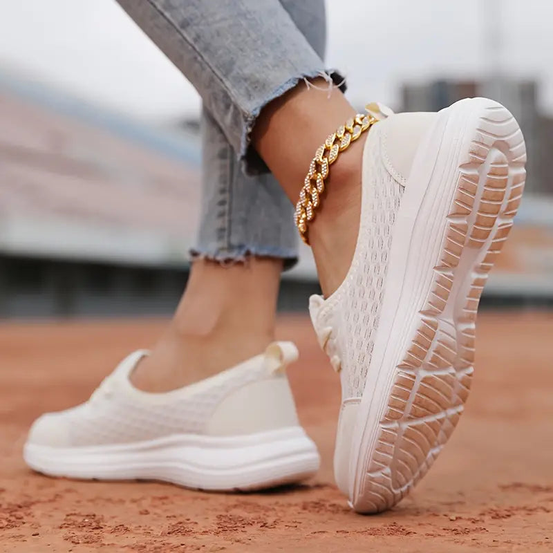 Nasze damskie tenisówki z siateczki w jednolitym kolorze oferują niezrównany komfort i styl podczas biegania. Te kapcie są lekkie i mają miękką podeszwę, która zapewnia komfort chodzenia na każdym kroku. Oddychająca konstrukcja z siateczki utrzymuje stopy w chłodzie i świeżości, a niska konstrukcja zapewnia swobodę ruchów i elegancki wygląd. Niezależnie od tego, czy załatwiasz sprawy, czy spacerujesz, te wszechstronne buty oferują idealne połączenie wygody i mody. Poczuj wygodę i wygodę dzięki naszym oddychającym i stylowym tenisówkom.