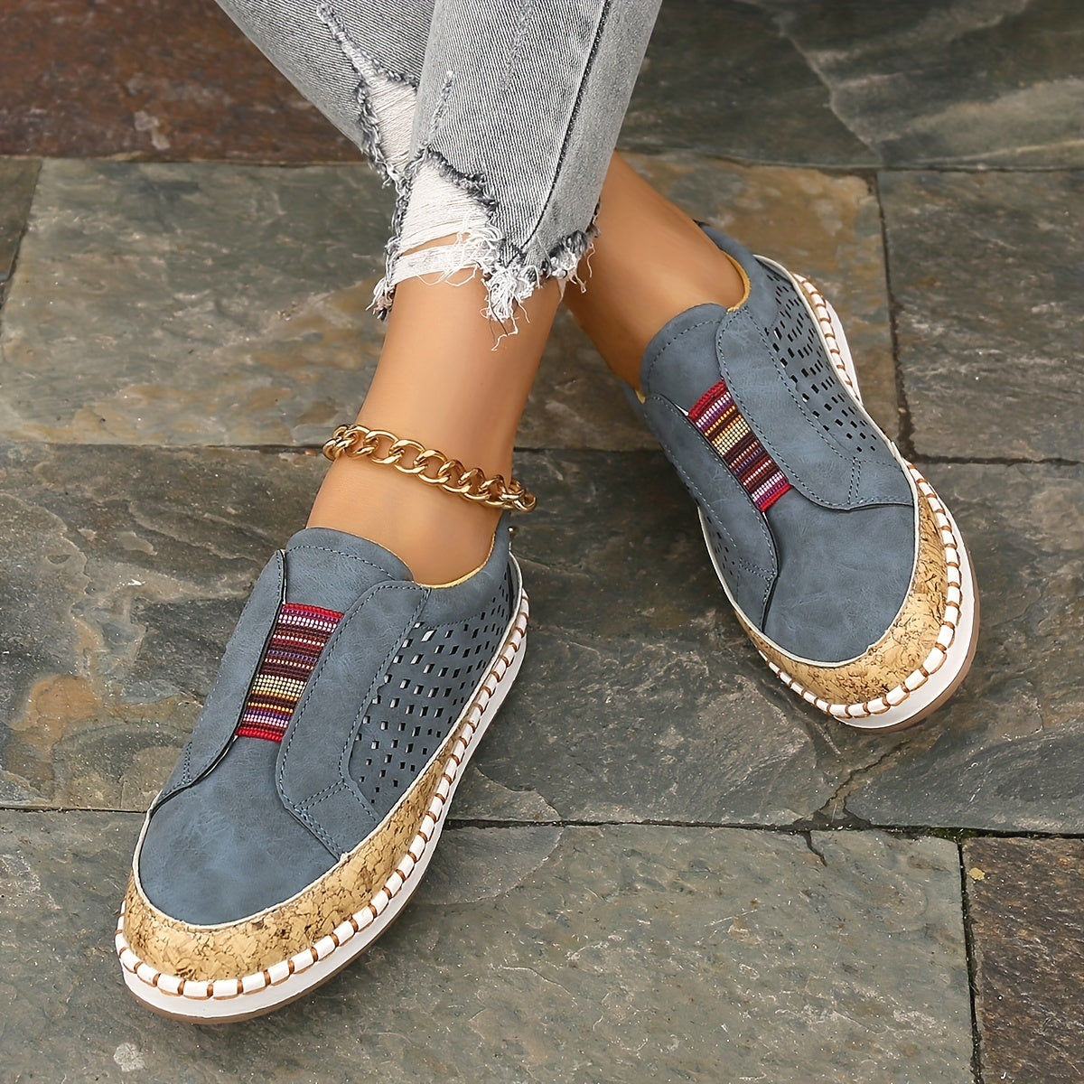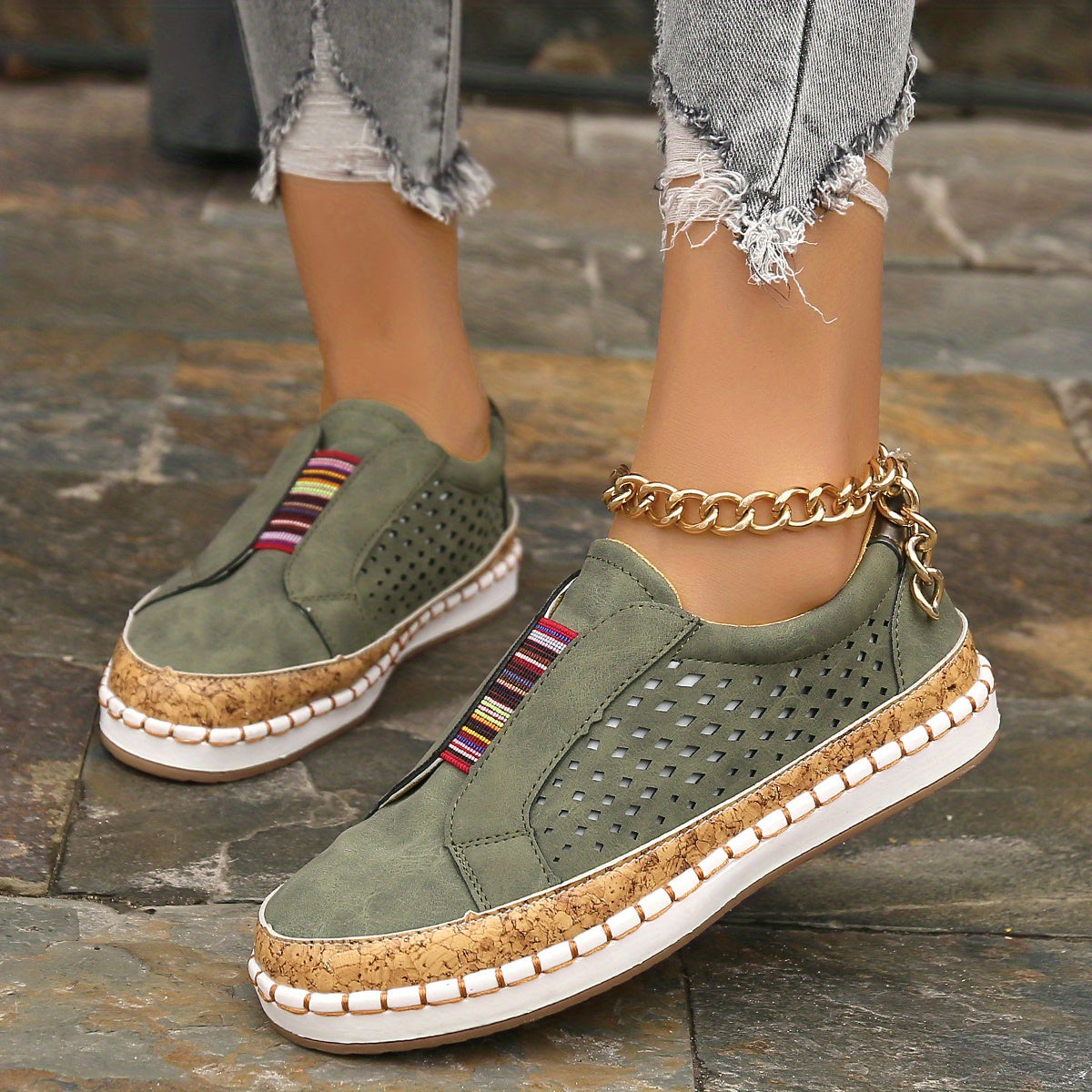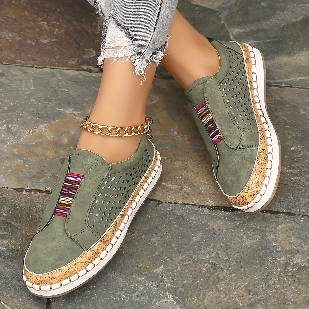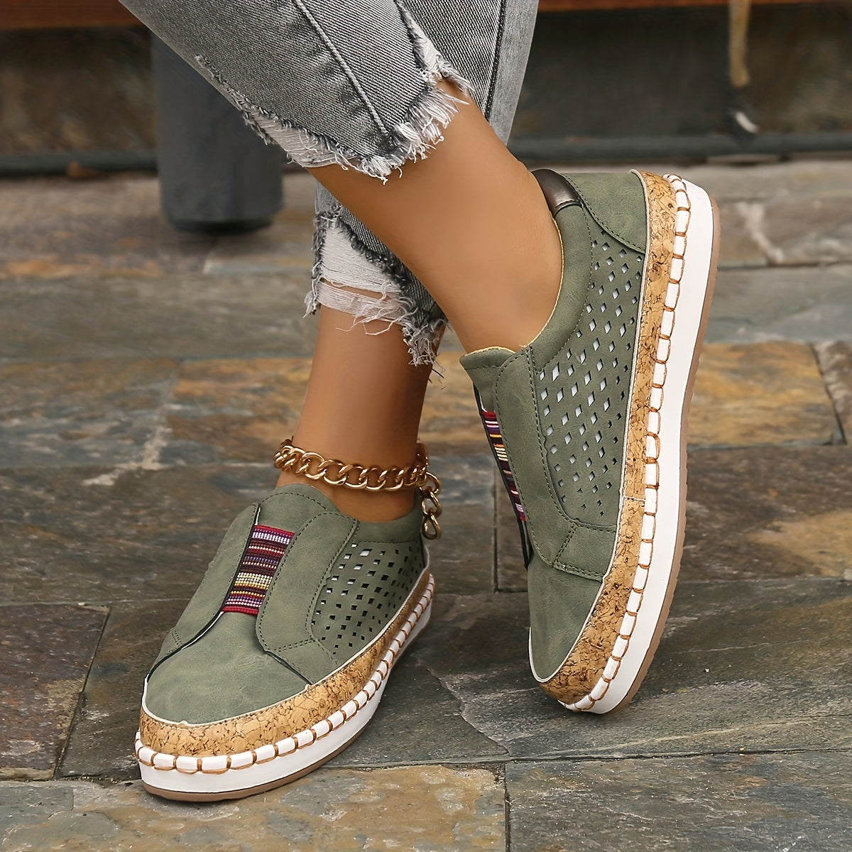 Kolorowe wsuwane loafersy Oddychająca konstrukcja z wycięciami