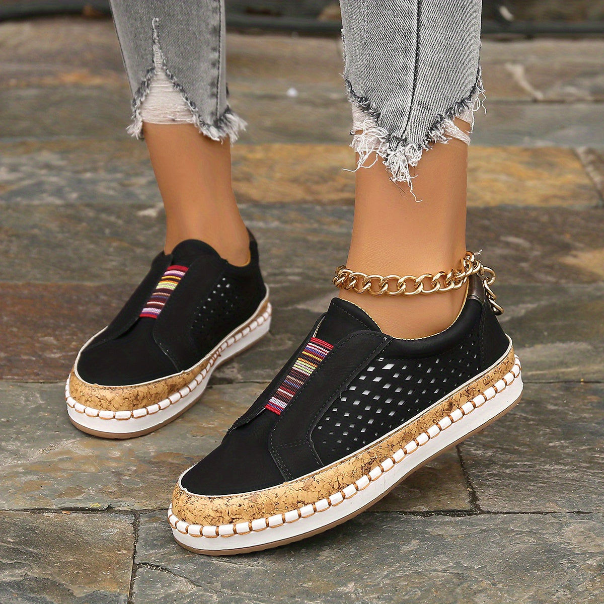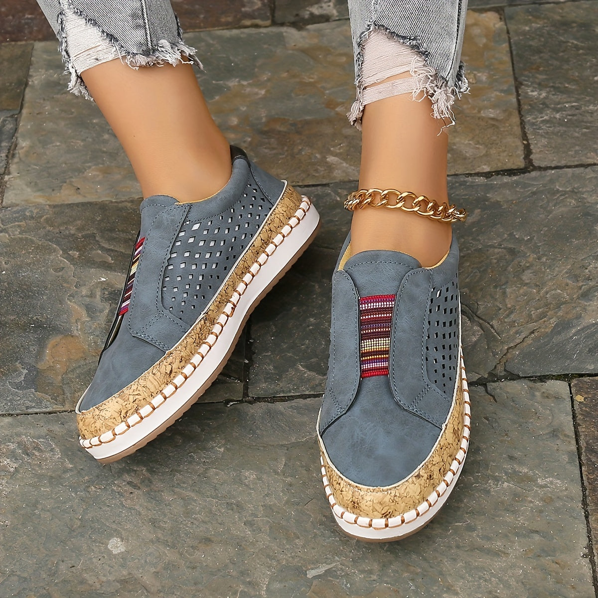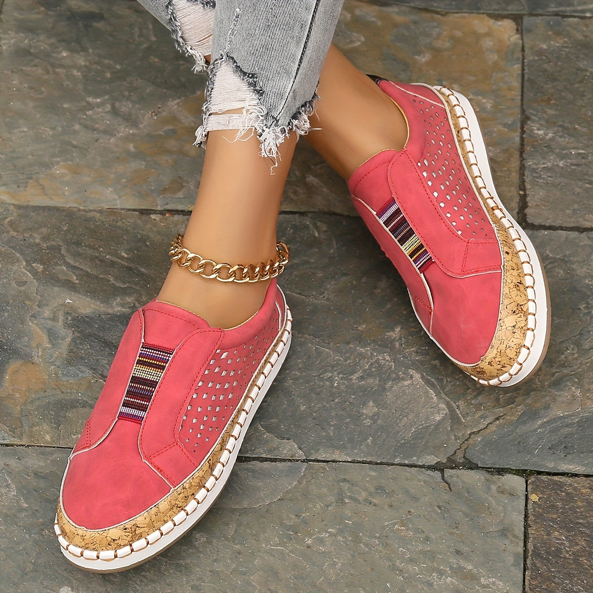 Kolorowe wsuwane loafersy Oddychająca konstrukcja z wycięciami