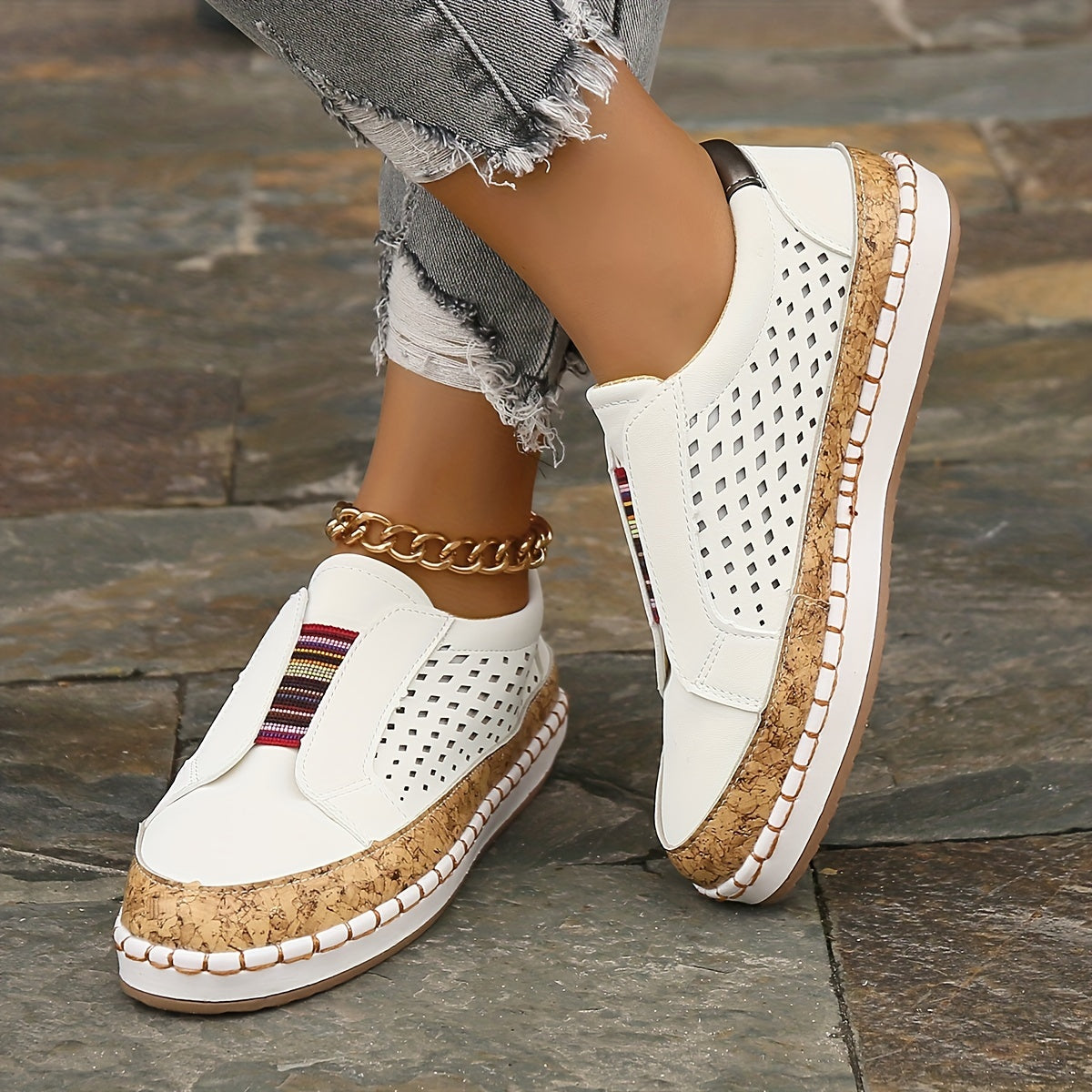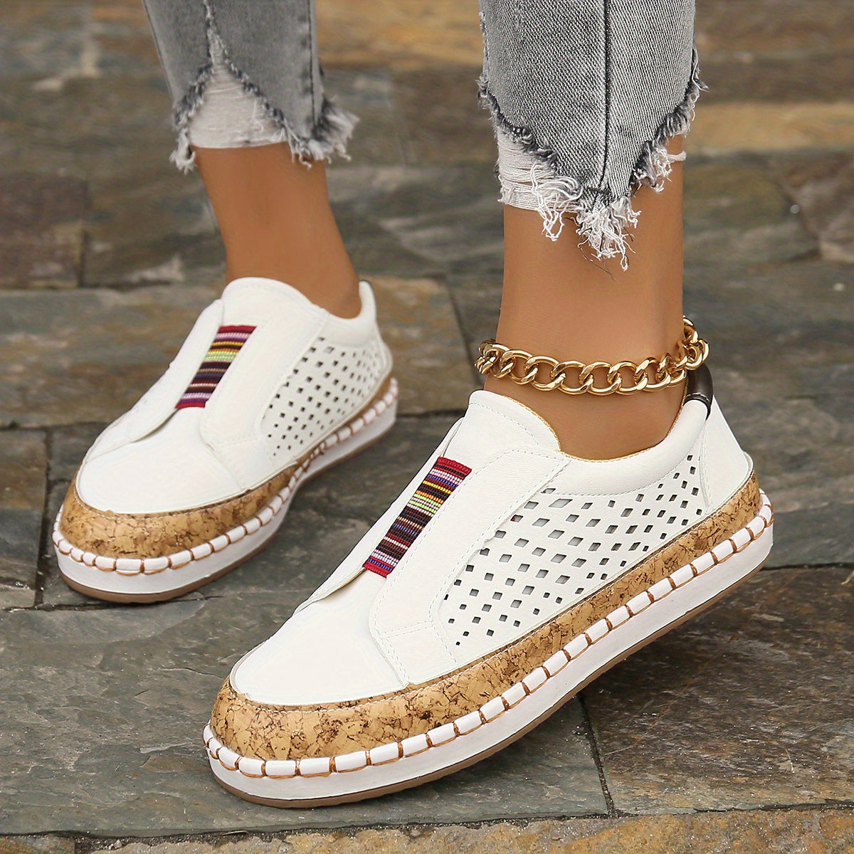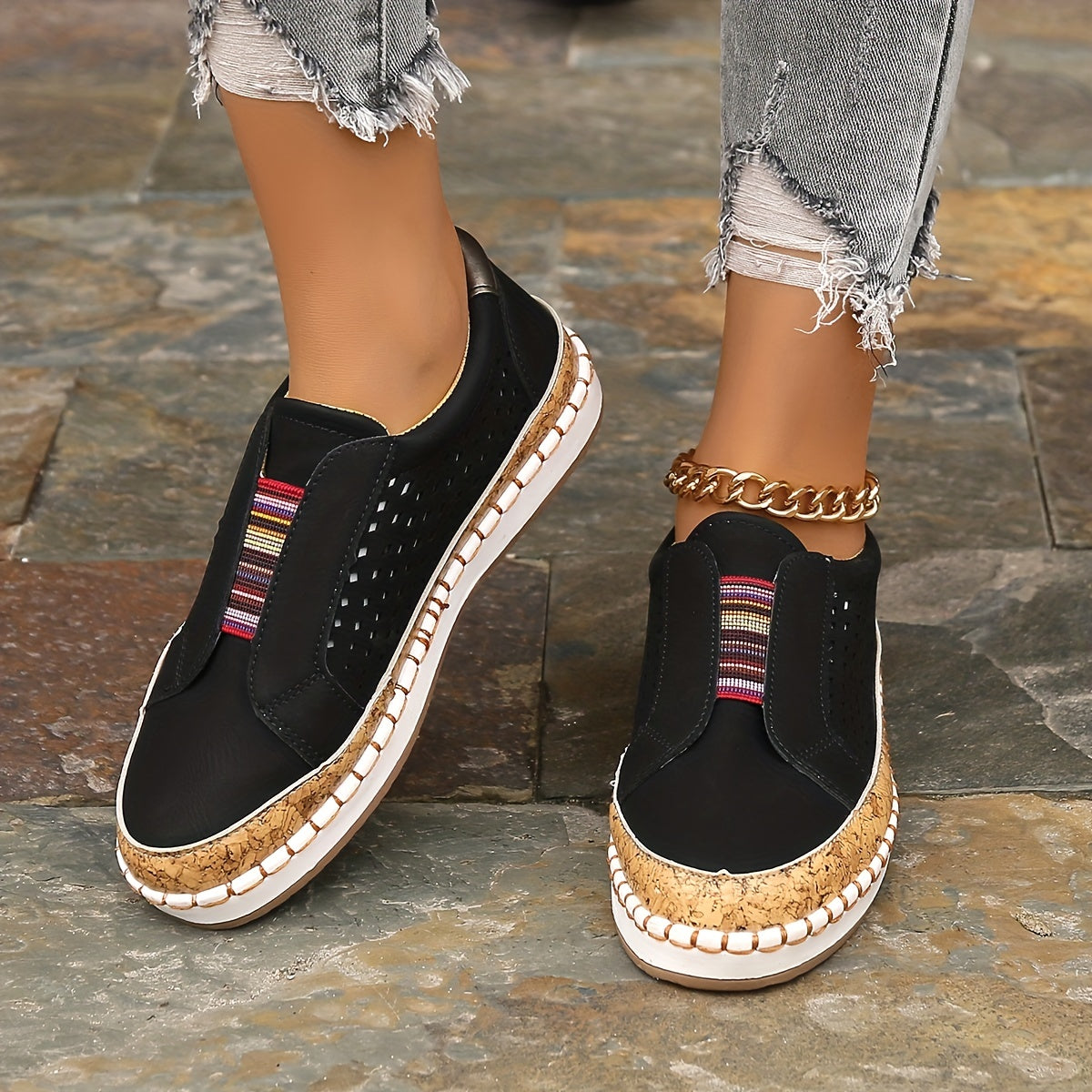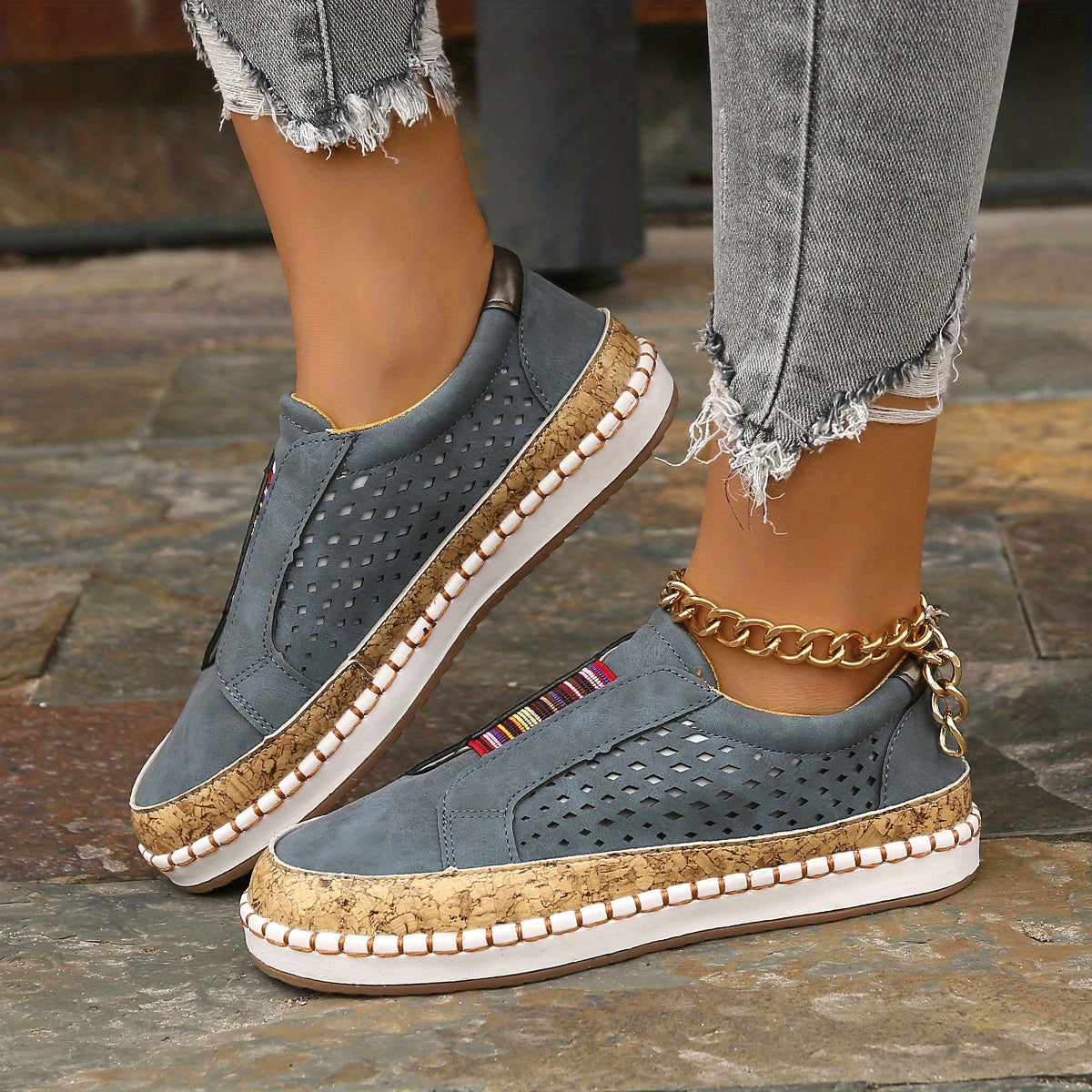 Kolorowe wsuwane loafersy Oddychająca konstrukcja z wycięciami