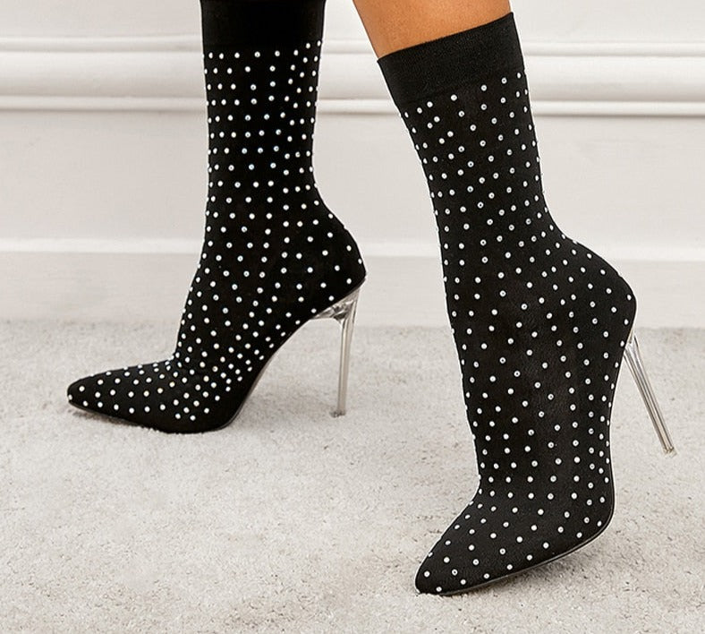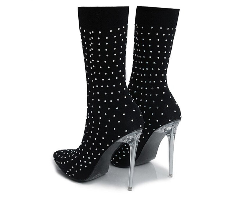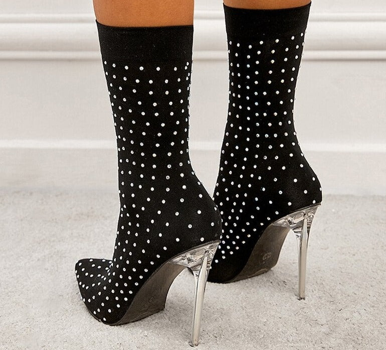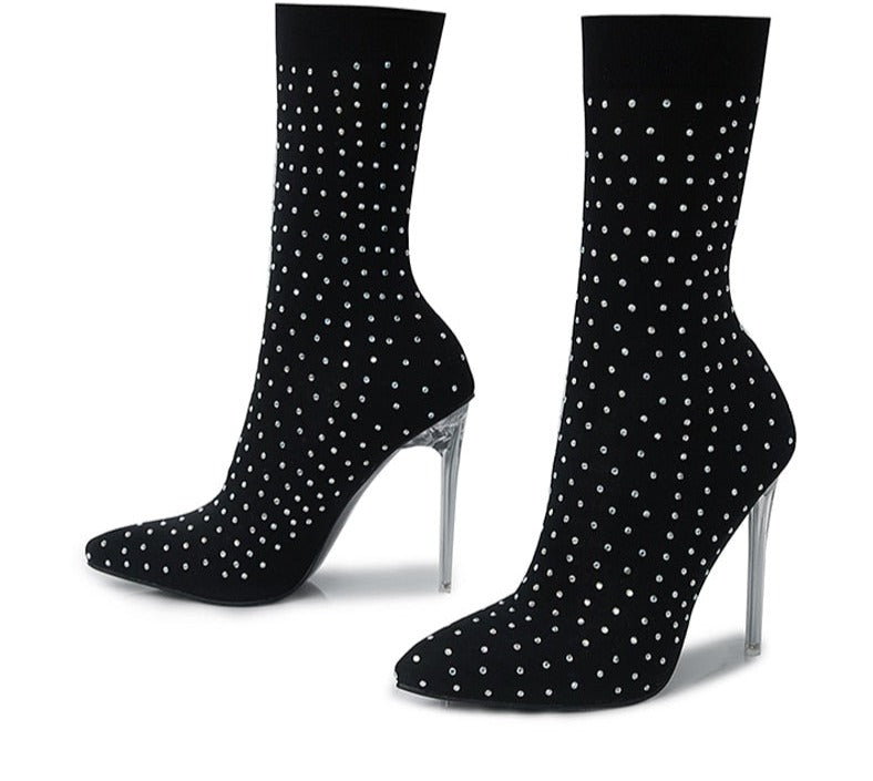 Te modne botki damskie z elastyczną cholewką wyróżniają się unikatowym designem, który przyciąga wzrok i dodaje elegancji każdej stylizacji. Zaprojektowane z myślą o modnych i pewnych siebie kobietach, łączą w sobie nowoczesność z klasyczną elegancją. Wygodna, elastyczna cholewka gwarantuje idealne dopasowanie do nogi, a smukły obcas podkreśla sylwetkę, zapewniając wygodę noszenia.