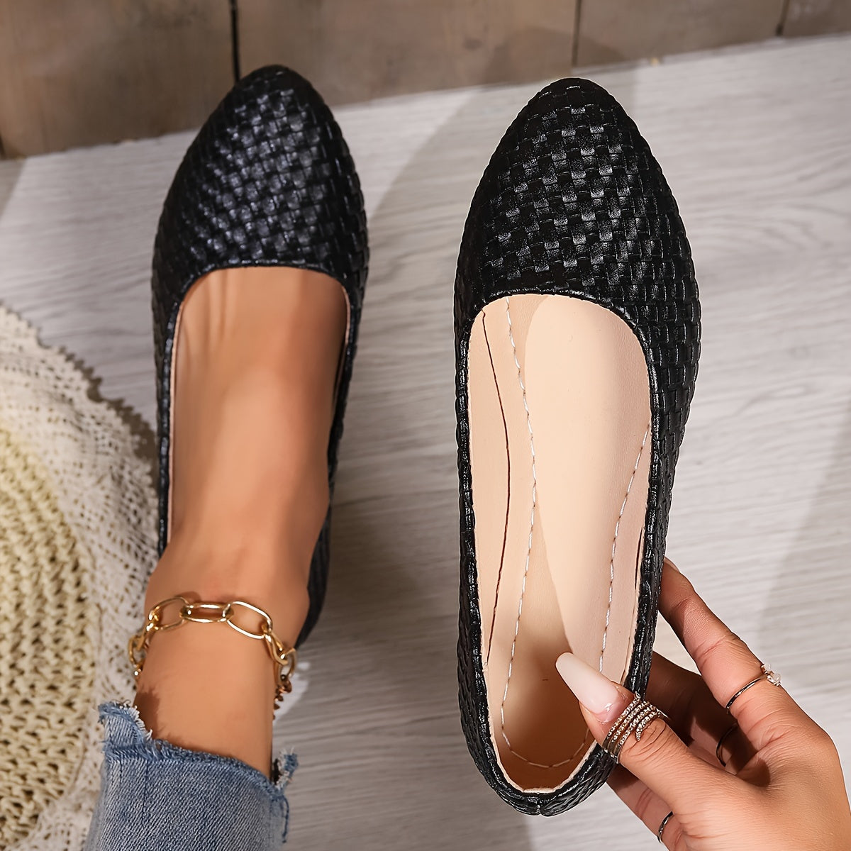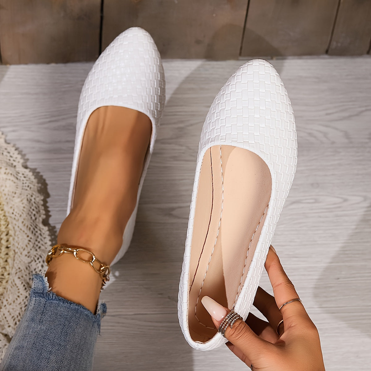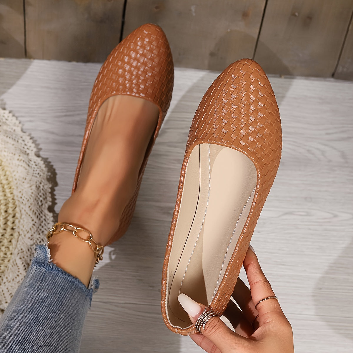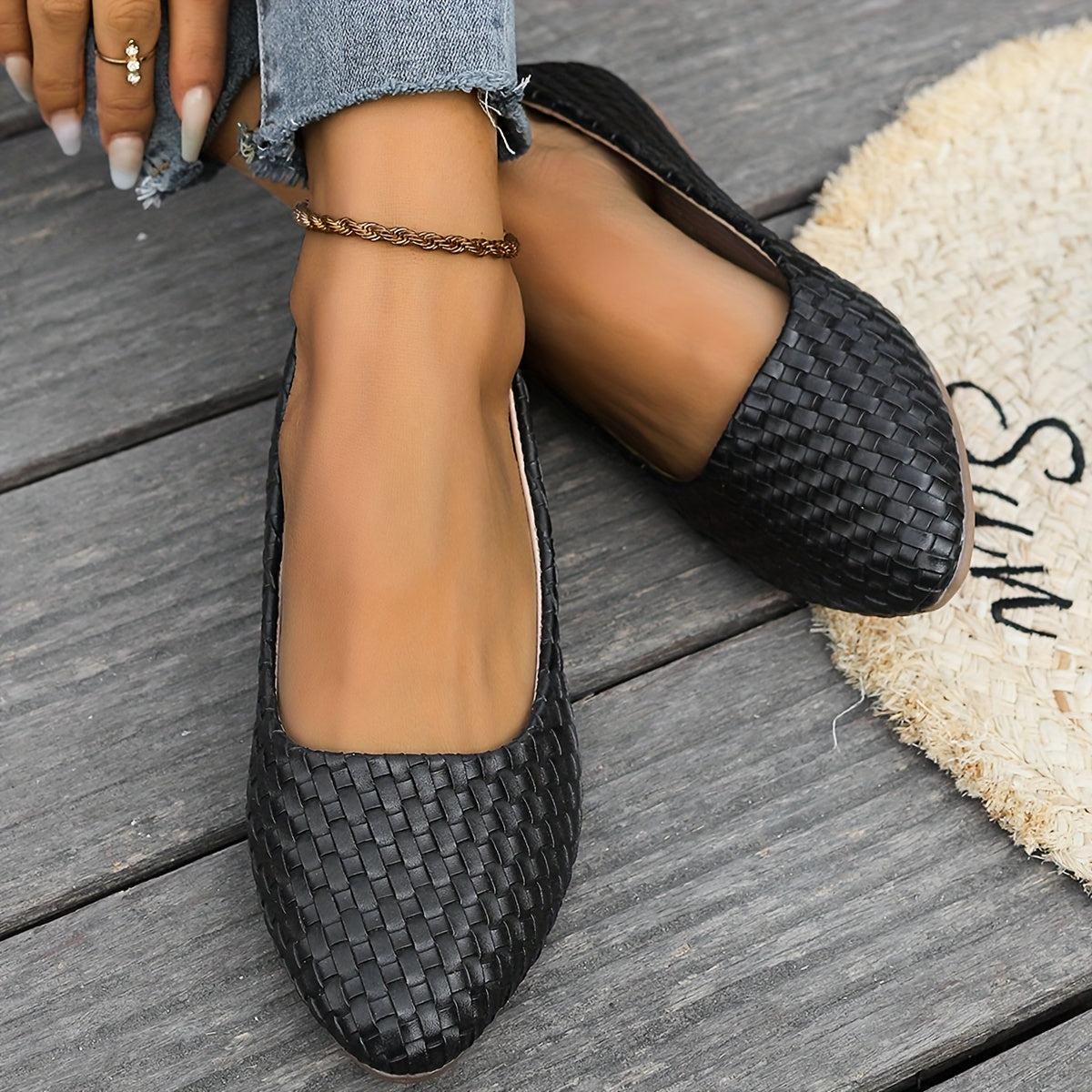Zacznij stylowo latem z naszymi wygodnymi mieszkaniami z plecionymi detalami. Te mieszkania, które są wykonane z lekkich gumowych podeszew i trwałych materiałów artystycznych, są idealnym dodatkiem do letniej garderoby. Te buty, dostępne w kilku kolorach, oferują eleganckie i praktyczne rozwiązanie dla codziennego życia.