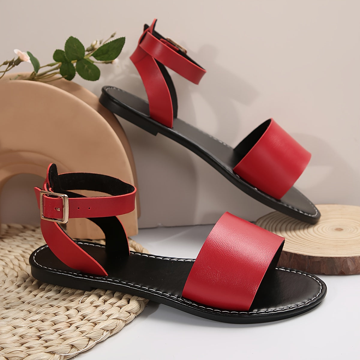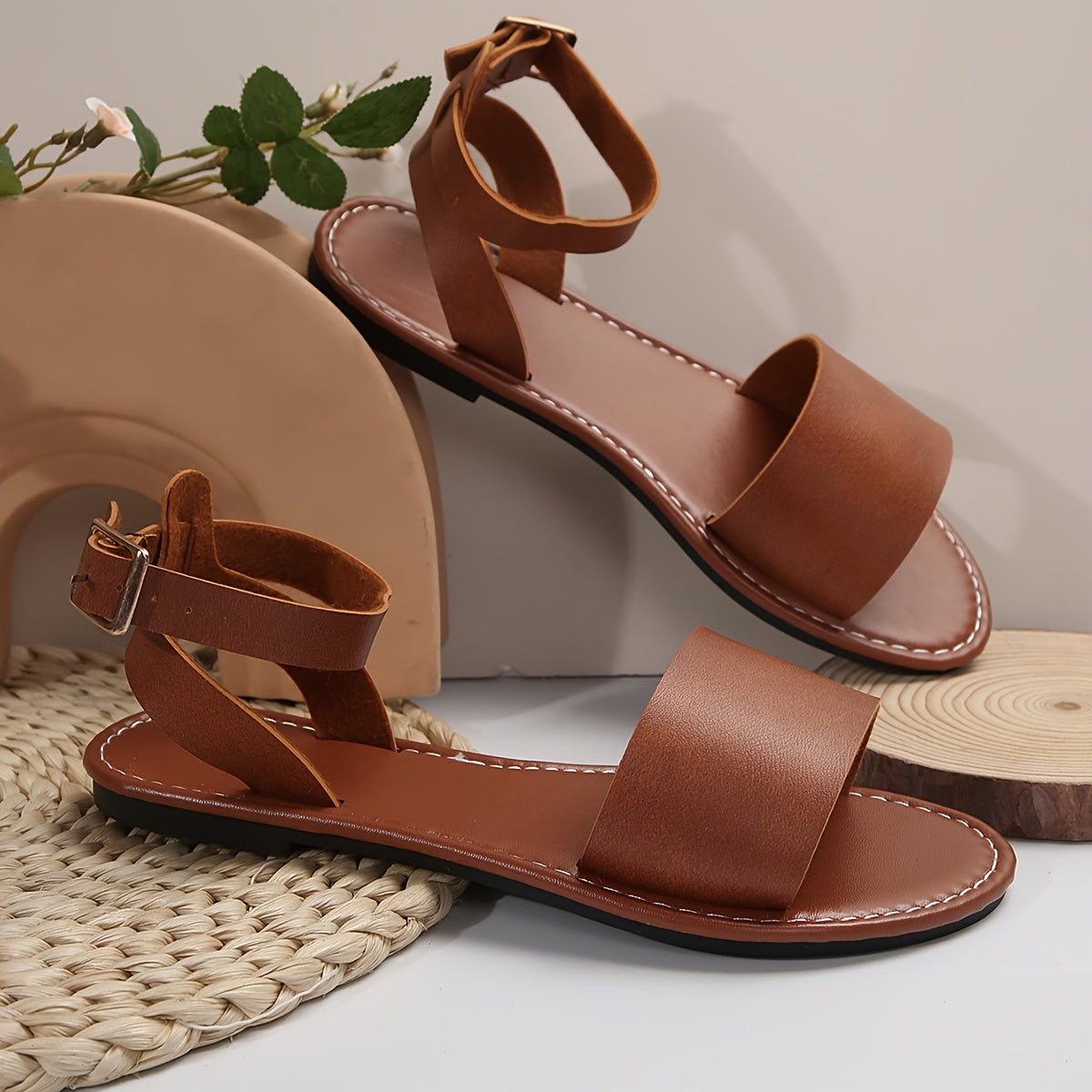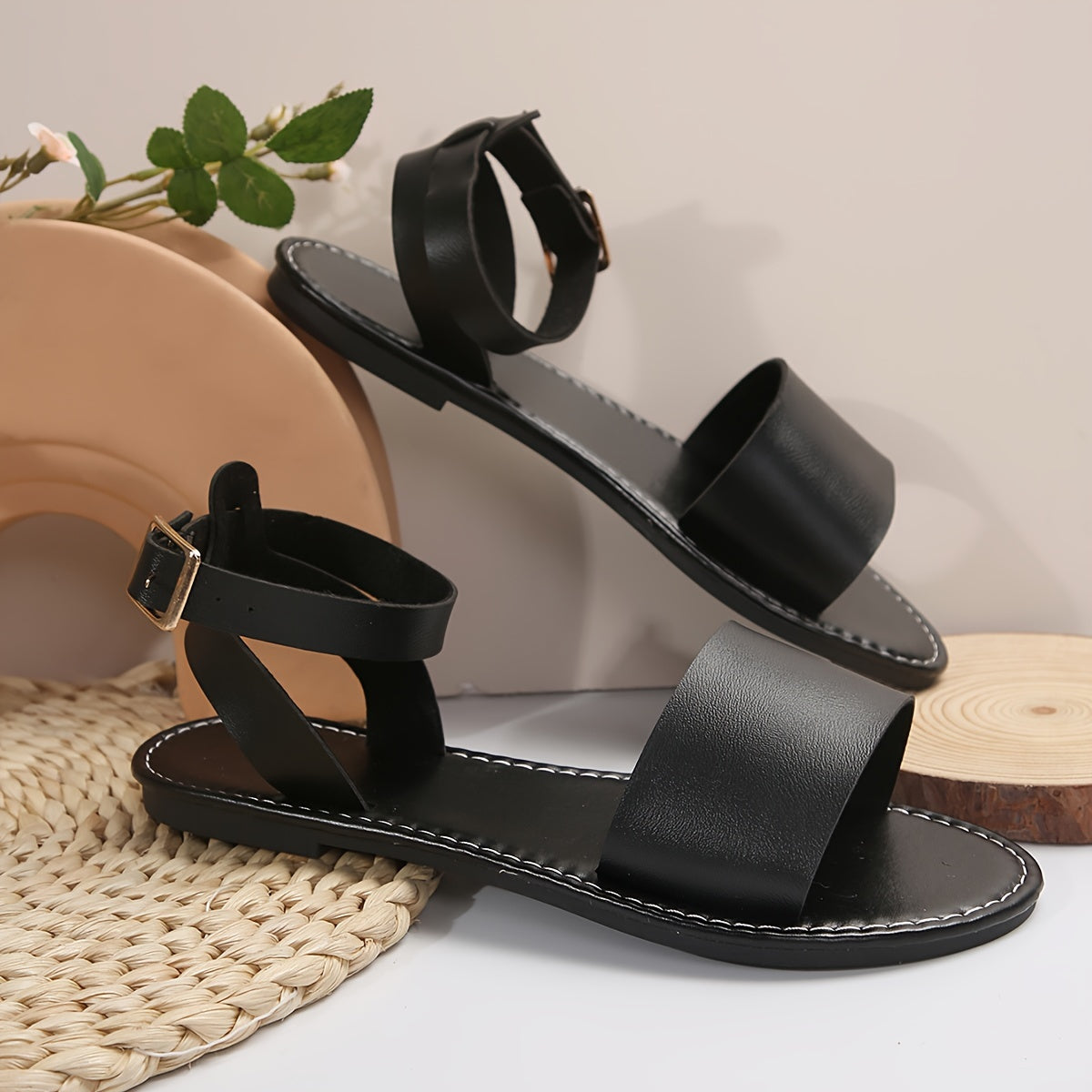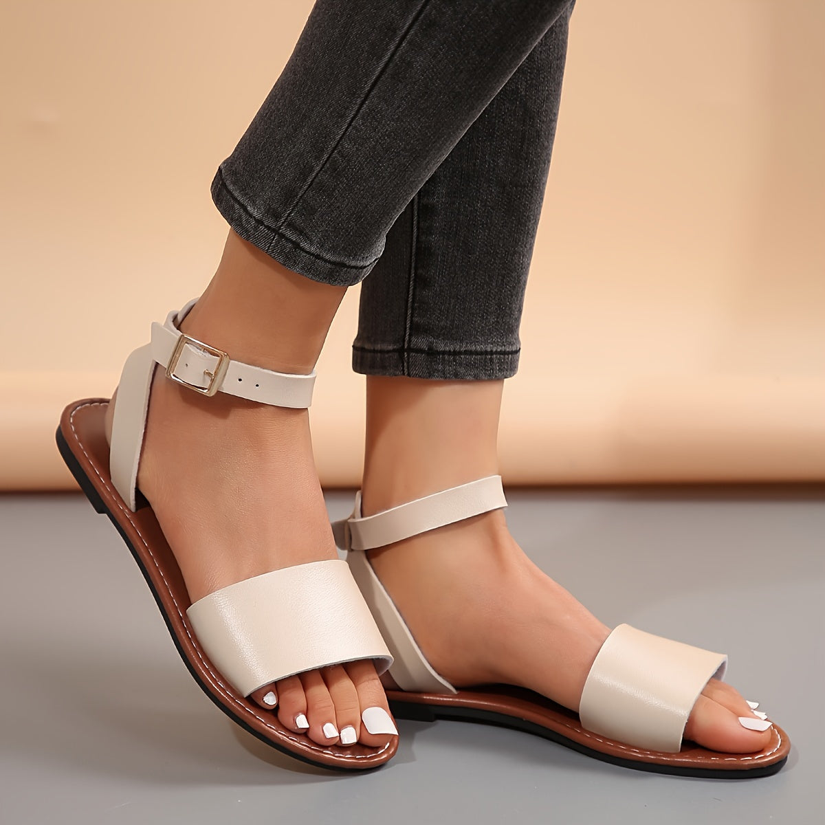 Letnie sandały damskie - szykowne płaskie sandały z metalową klamrą