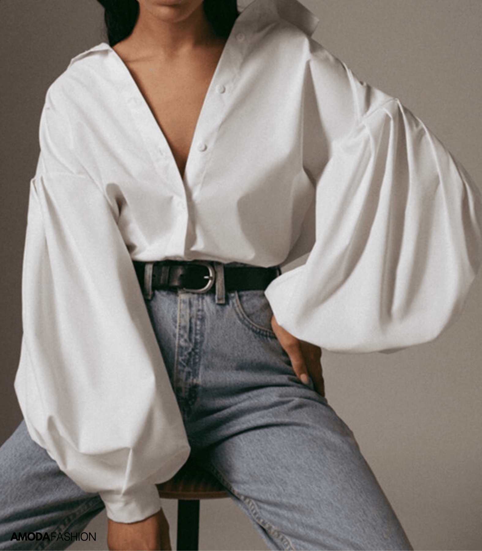Podobnie jak ta piękna, luźna bluzka z rękawami typu latarnia z kolekcji Amoda fashion. Połącz tę piękną bluzkę na przykład z marynarką i ładnymi dżinsami. Lub załóż na nią ładny, ciepły sweter.