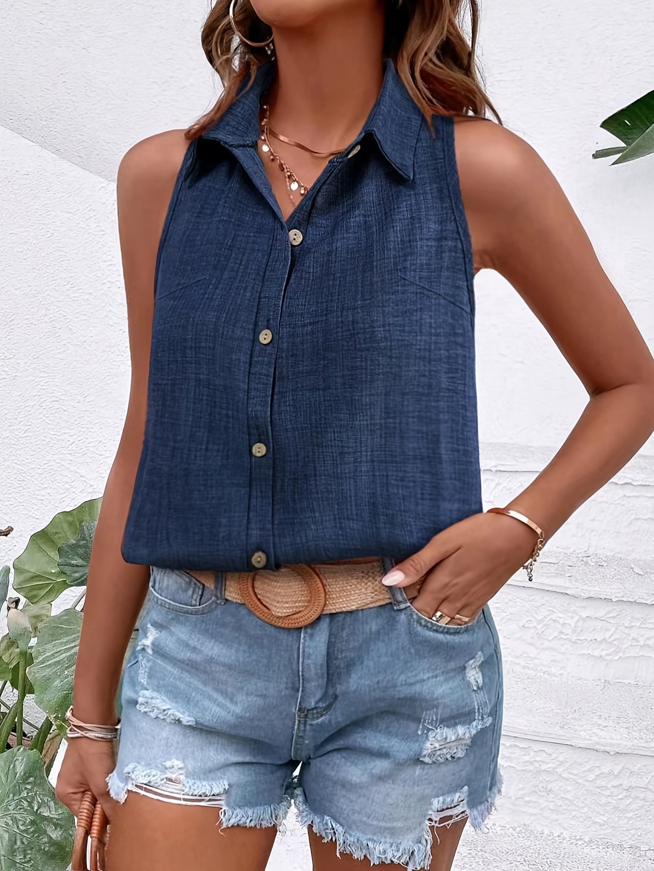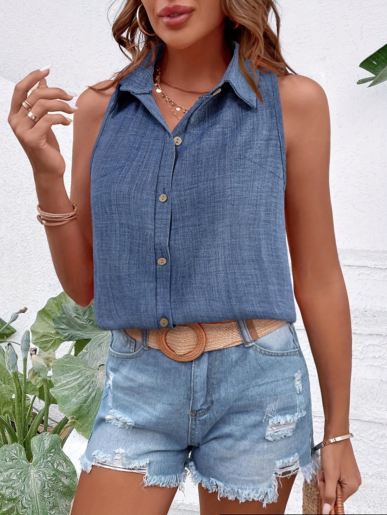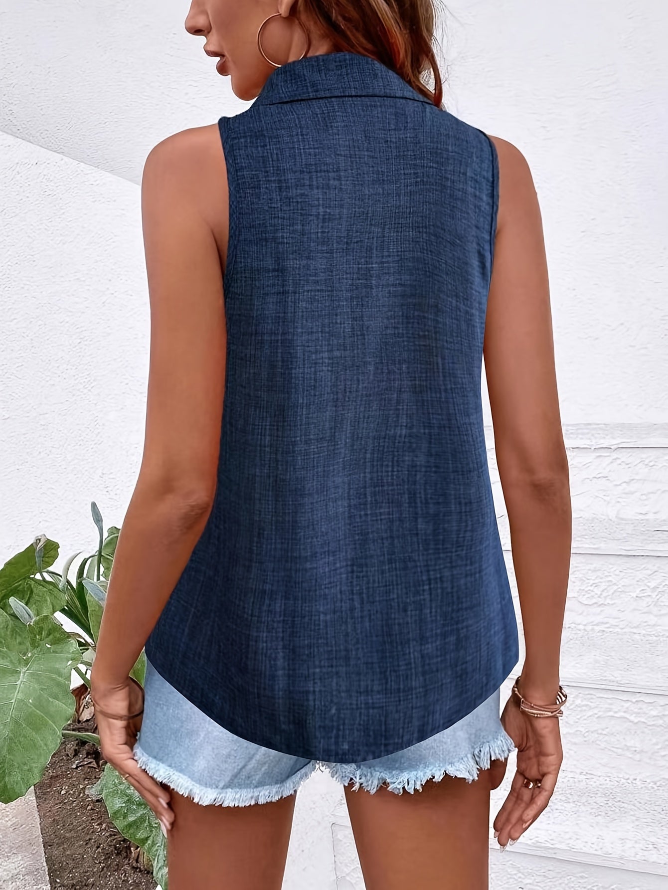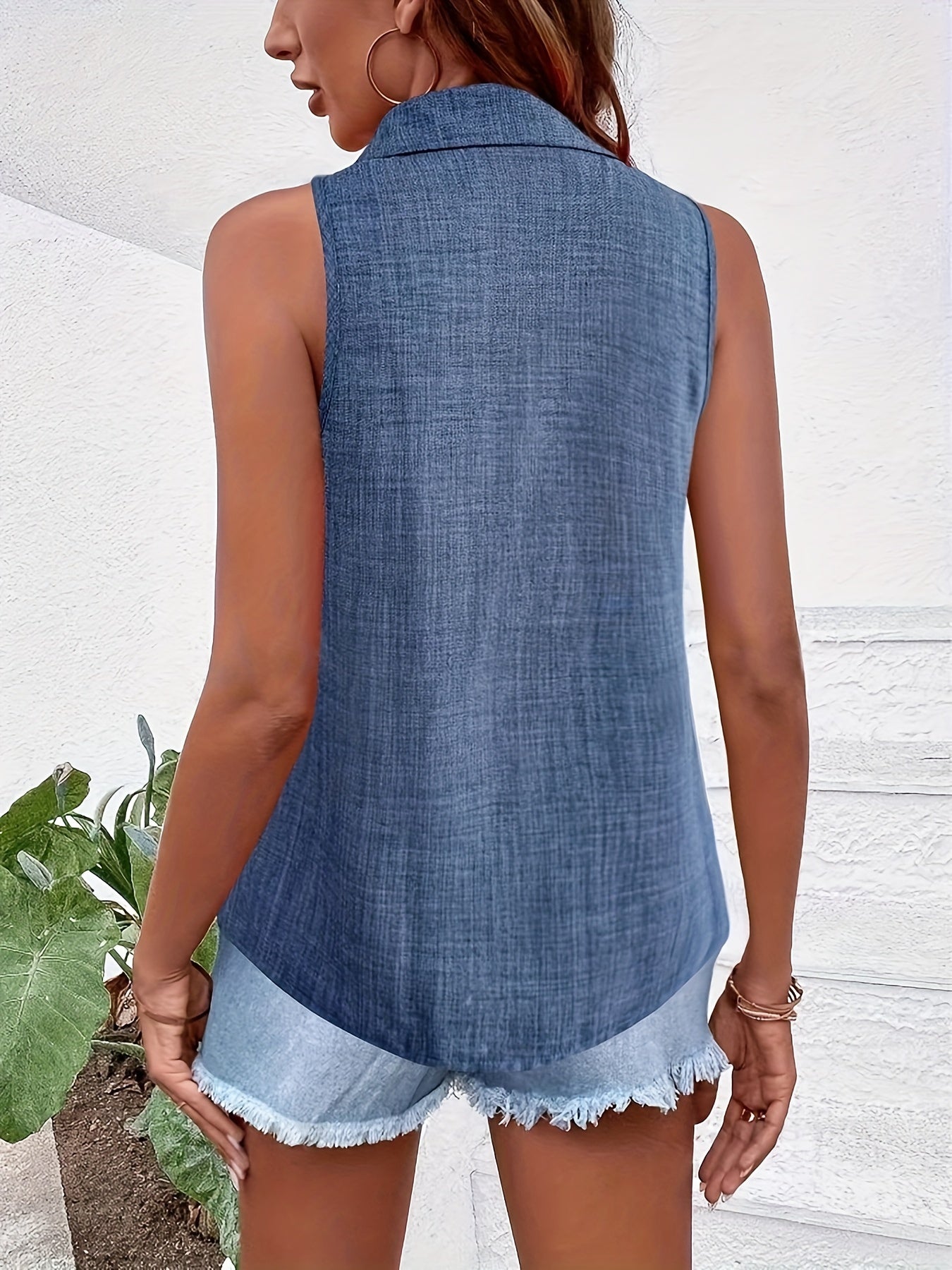 Bluzka bez rękawów Letnia bluzka bez guzików w kolorze niebieskim