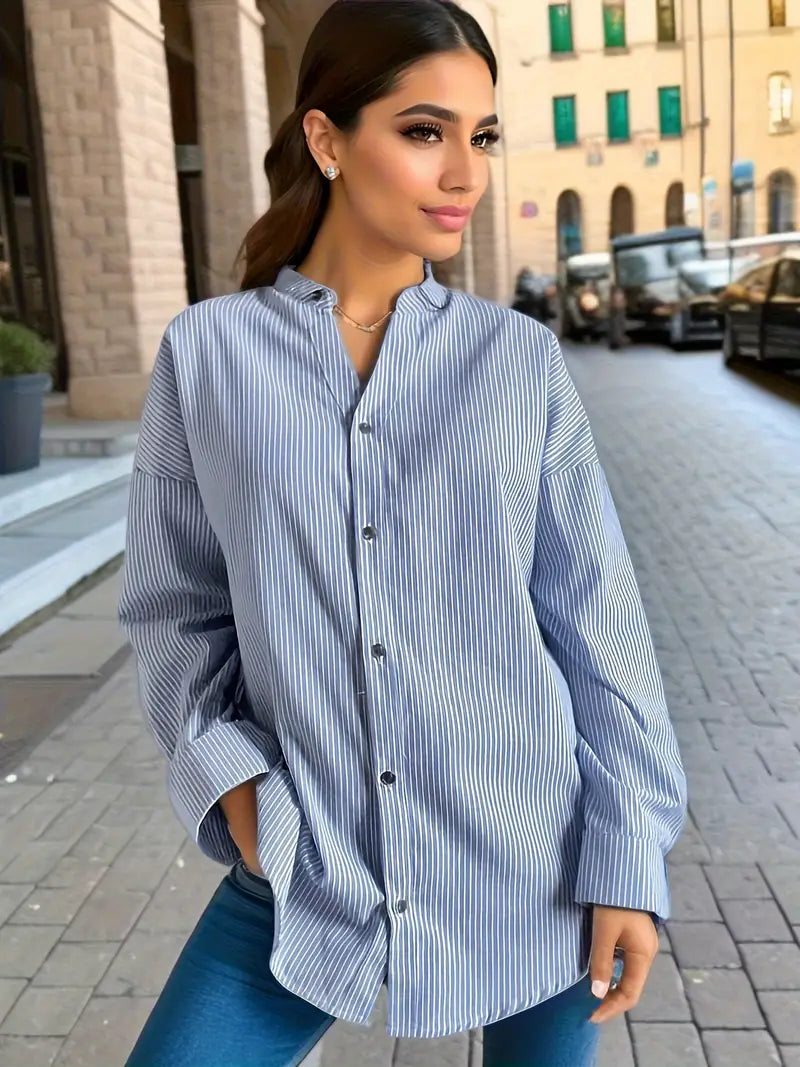 Bluzka damska w paski z dekoltem w kształcie litery V - na co dzień i z długim rękawem