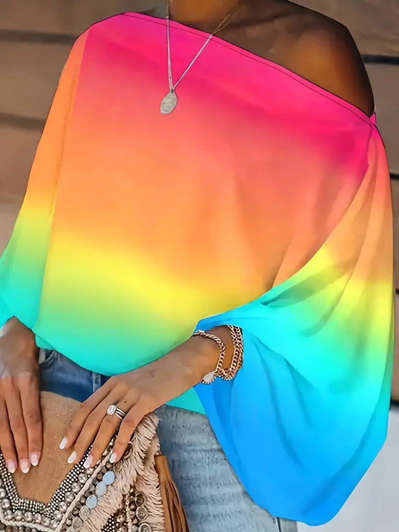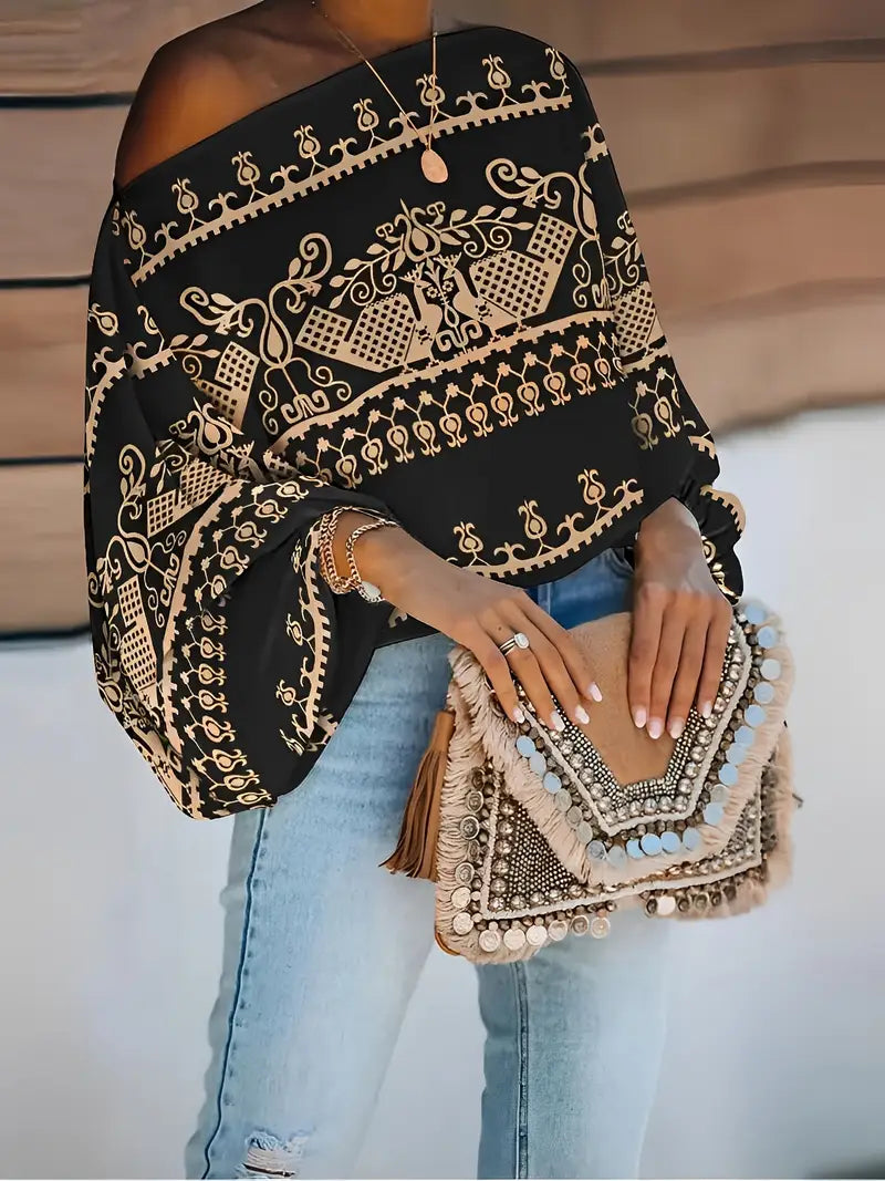 Bluzka na ramiączkach boho - etniczne nadruki i rękawy nietoperze