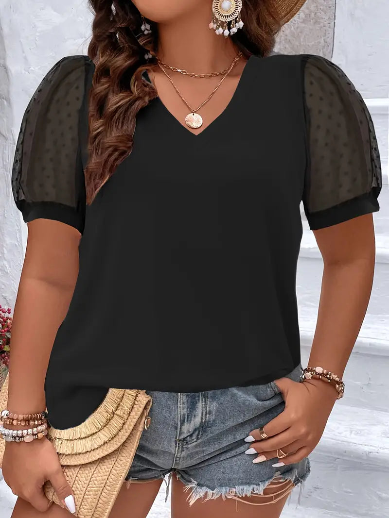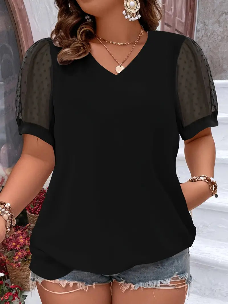 Bluzka Grote maten Zwarte V-Hals - Kanten Mouwen, Licht & ElegantBluzka Grote maten Zwarte V-Hals - Kanten Mouwen, Licht & Elegant