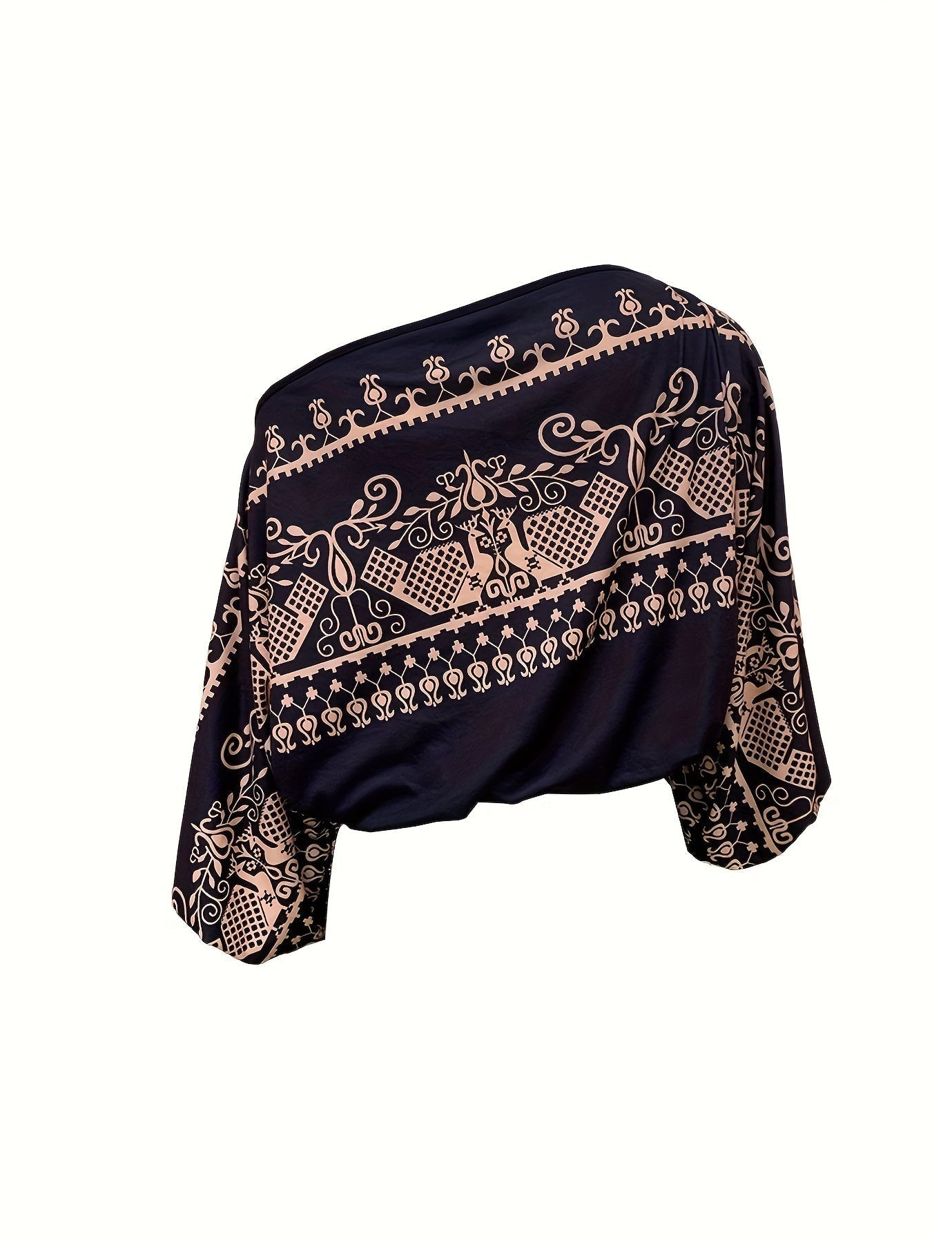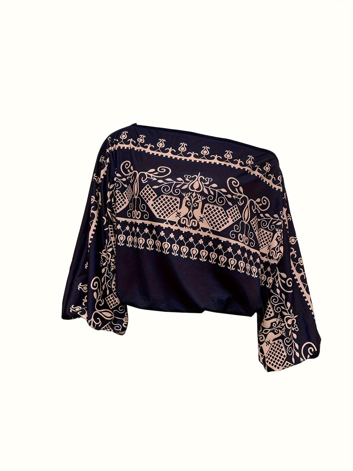 Etniczna bluzka w stylu boho z odkrytymi ramionami i szerokimi rękawami typu nietoperz, idealna na wiosnę i jesień