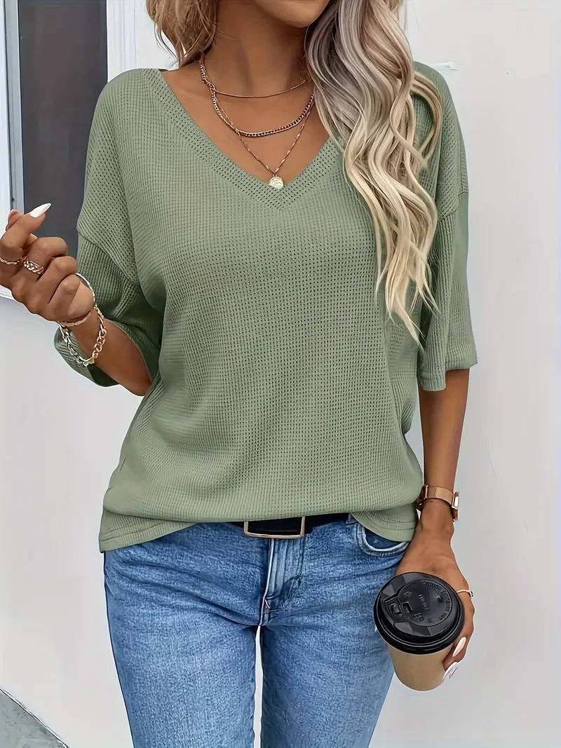 Casualowy T-shirt z opuszczonymi ramionami i dekoltem w kształcie litery V
