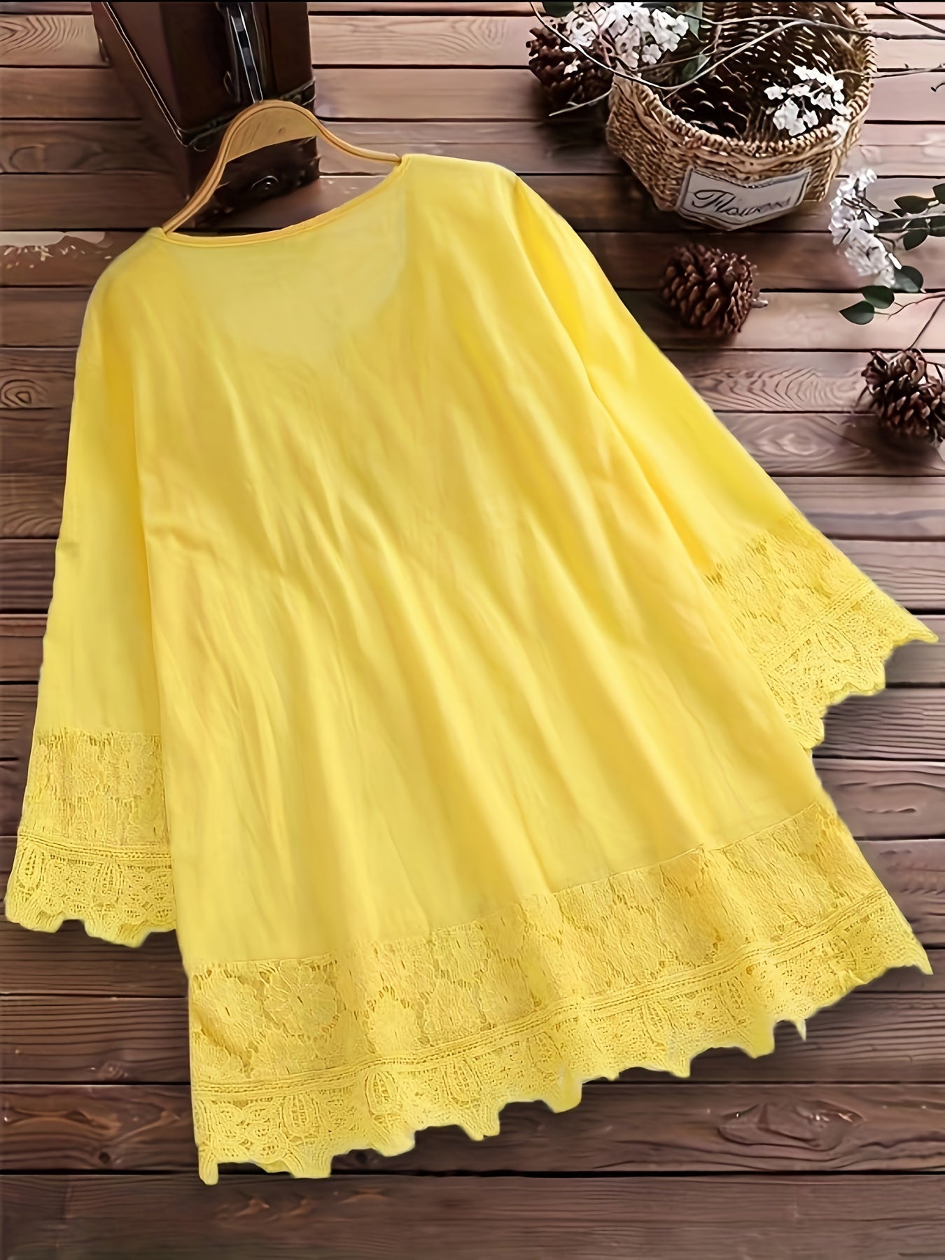 Ta elegancka letnia bluzka jest idealnym towarzyszem na ciepłe dni. Wykonana z lekkiego poliestru, jest wygodna w noszeniu i oferuje przewiewny, oddychający krój. Ponadczasowy design z krótkimi rękawami i luźnym krojem tworzy stylowy, ale wygodny wygląd. Dostępna w różnych kolorach, bluzka może być łączona na wiele sposobów - idealna na czas wolny, do biura lub na wakacje.
