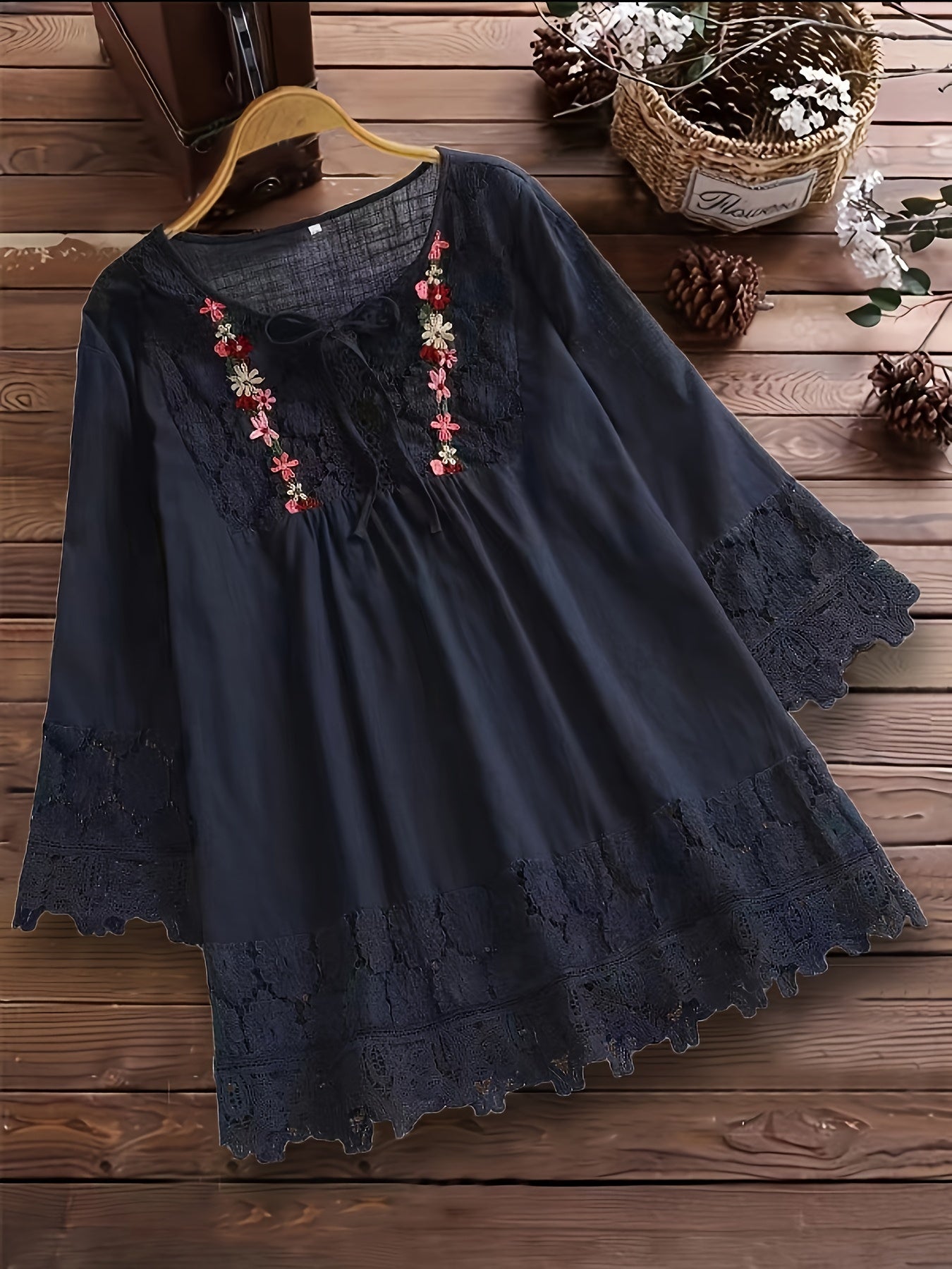 Rozmiary bluzki damskiej - Elegancka, z koronką i krótkim rękawem