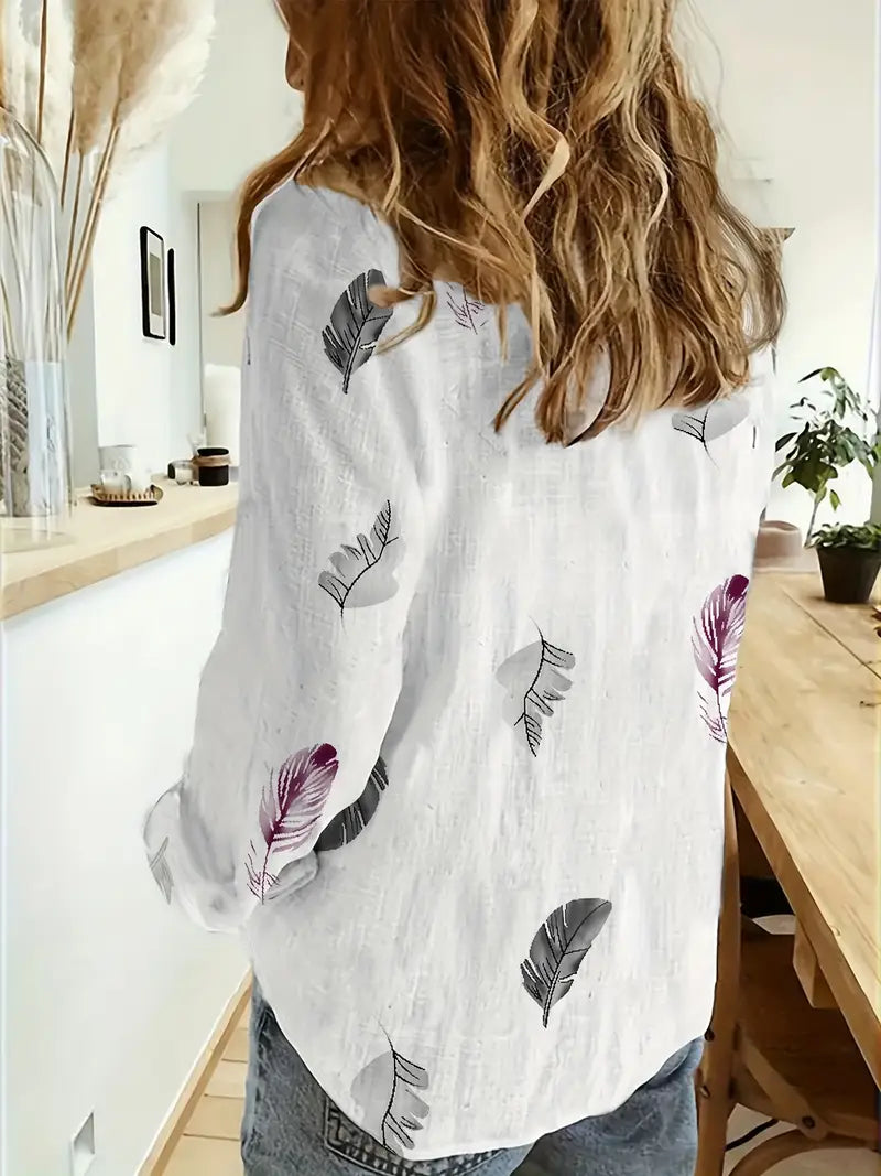 Damska bluzka z nadrukiem piór, koszula vintage z długim rękawem