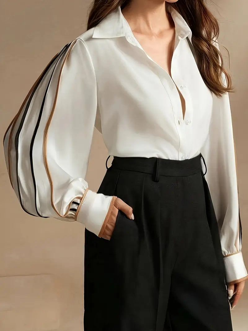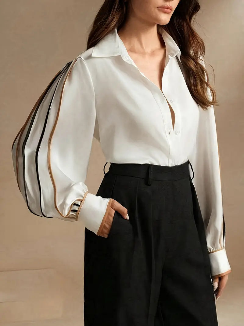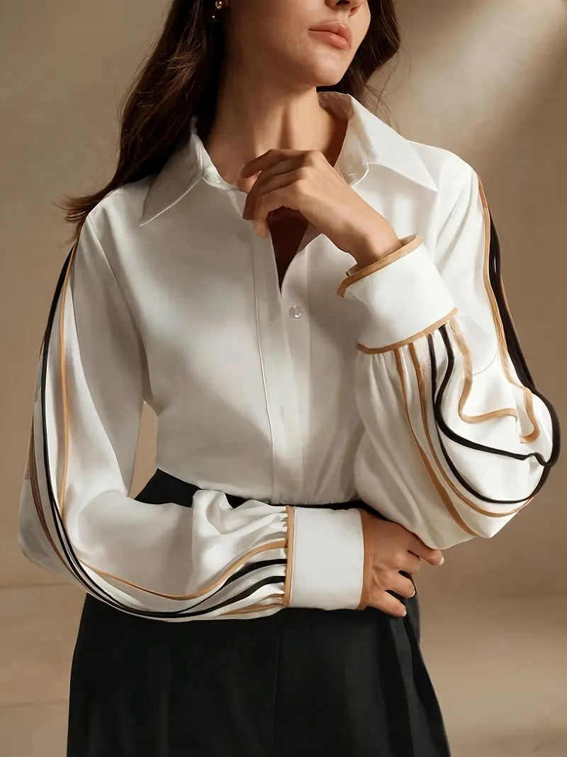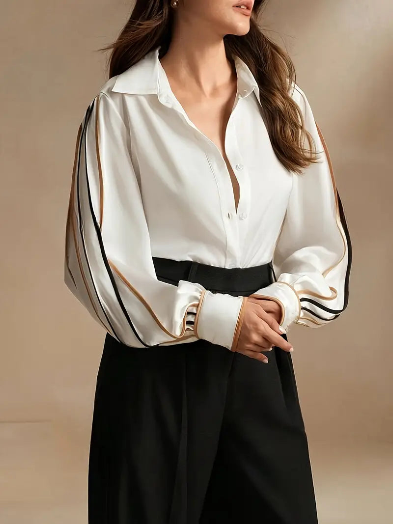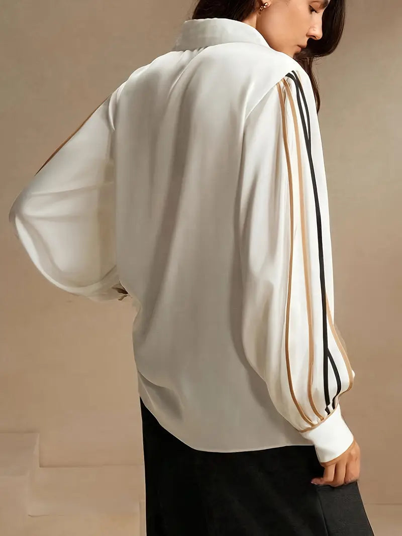 Damska bluzka w paski z zapięciem na guziki - poliester, długi rękaw