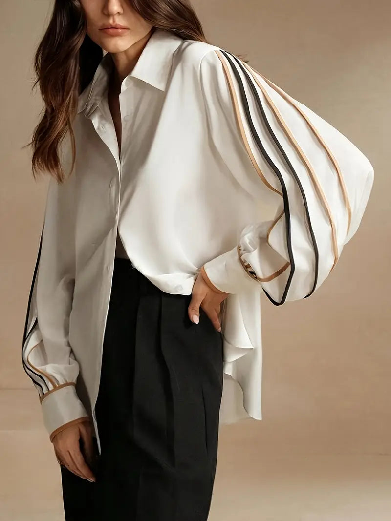 • Krój: Wygodna bluzka z długim rękawem i klasycznym kołnierzykiem