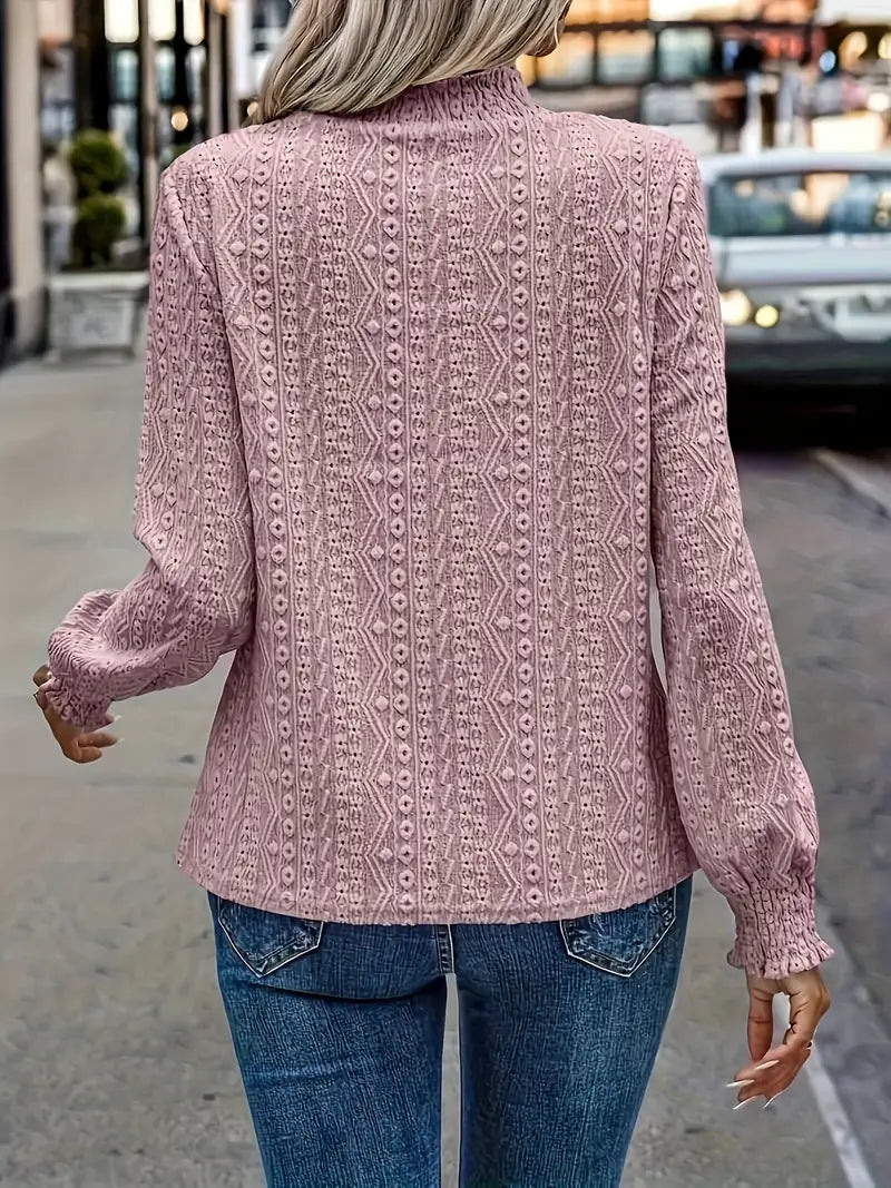 Bluzka damska z żakardowymi detalami, długi rękaw, półprzezroczysta