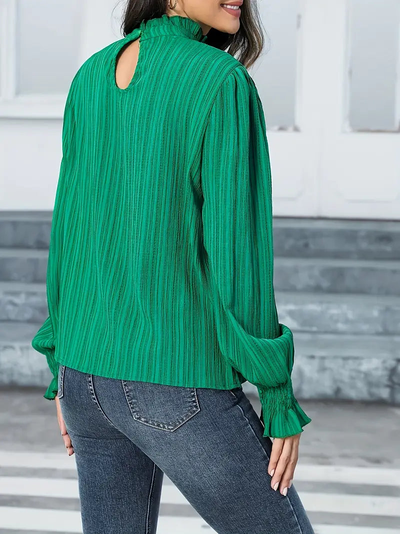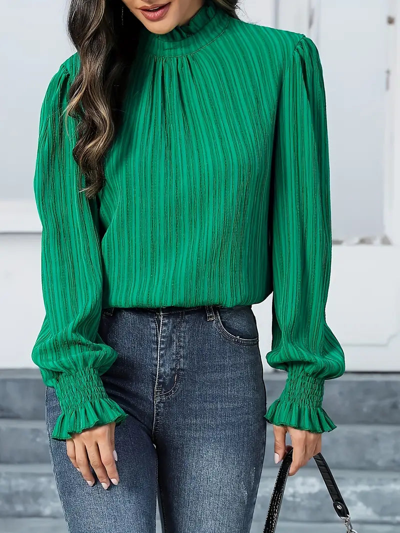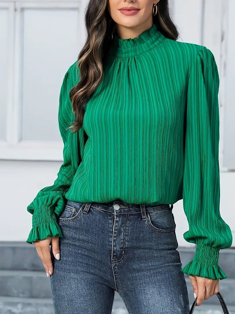 Bluzka damska ze stójką - Elegancka bluzka z długim rękawem w kolorze zielonym