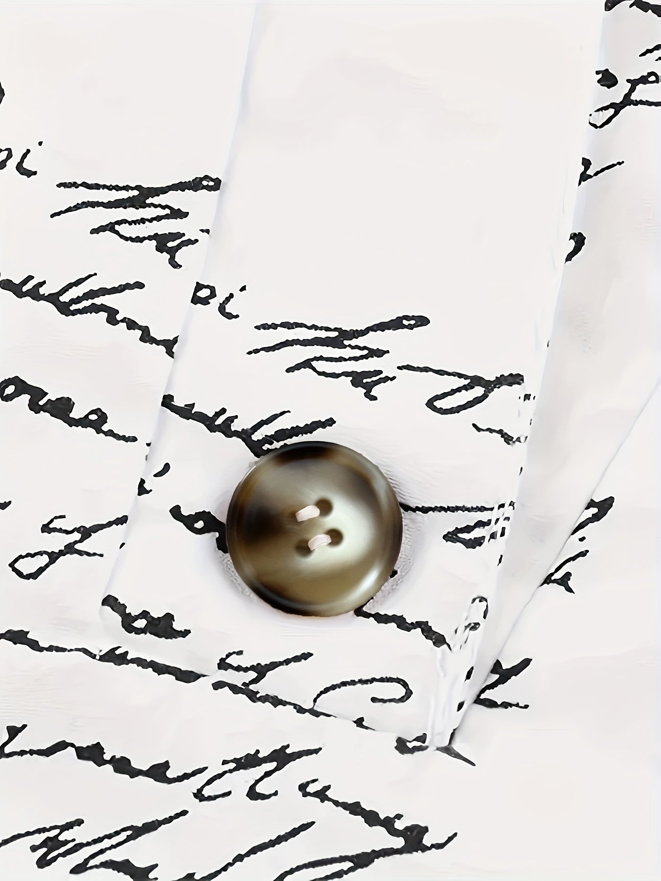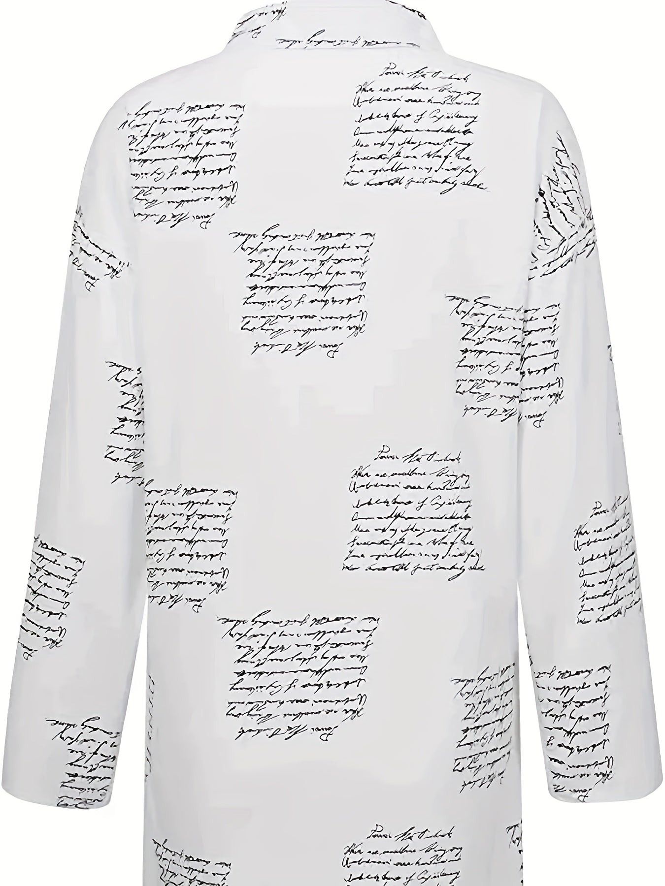 Bluzka damska oversize z nadrukiem liter - długie rękawy, zapięcie na guziki