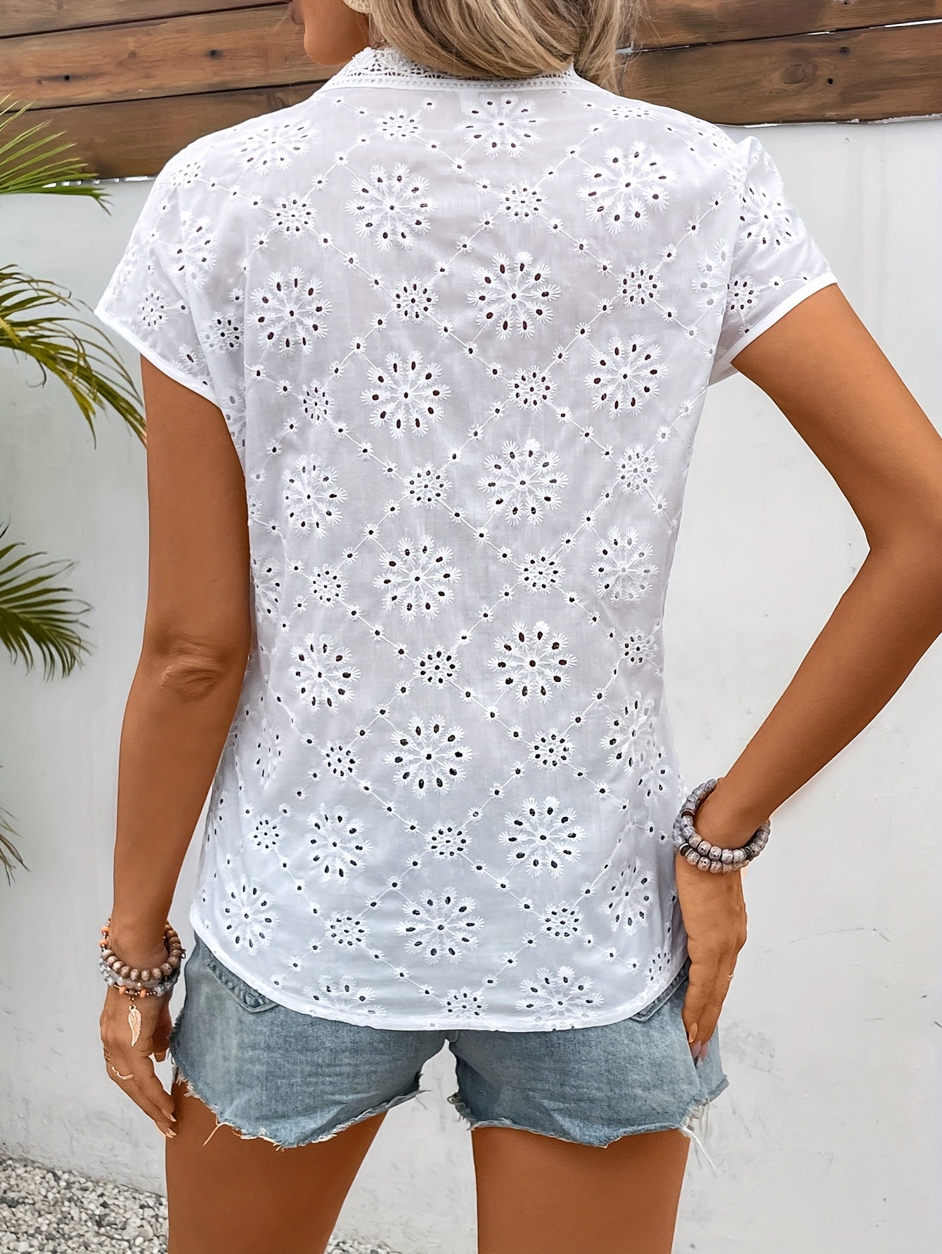 Koronkowa bluzka damska z dekoltem w kształcie litery V - letnia koszula casual w kolorze białym