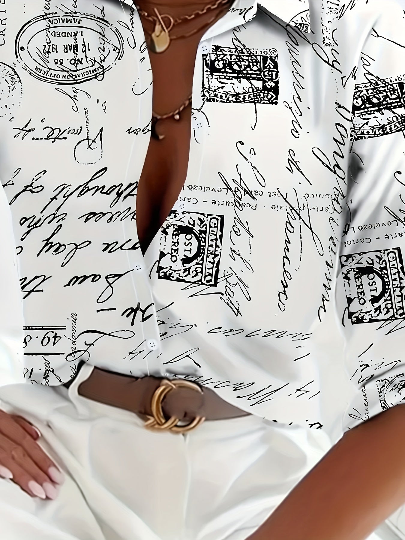 Damska koszula lniana – elegancka, z długim rękawem, zapinana na guziki & Kołnierzyk, swobodny i Oddychający
