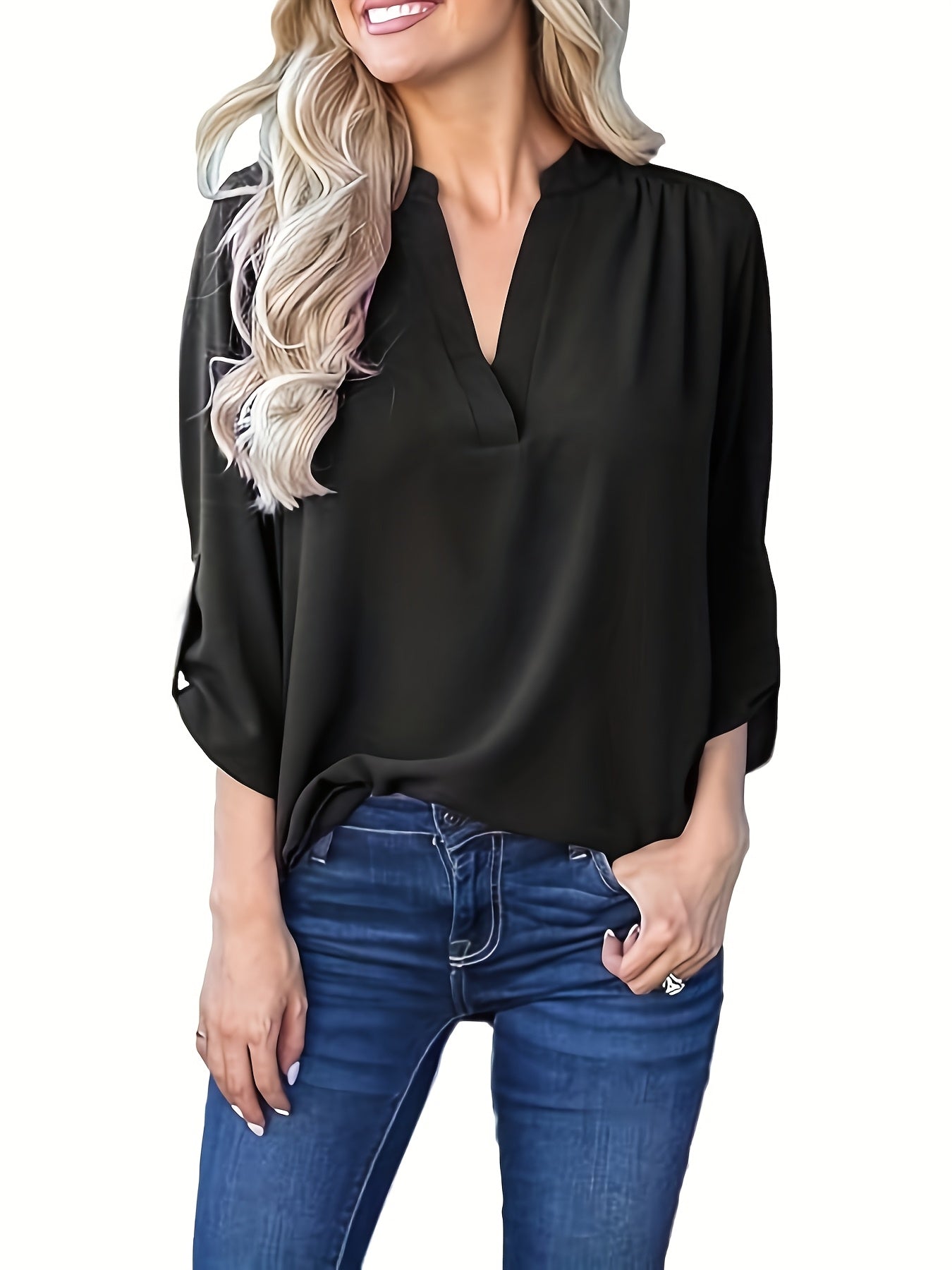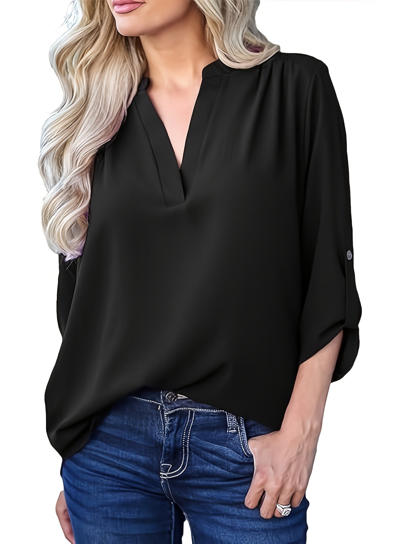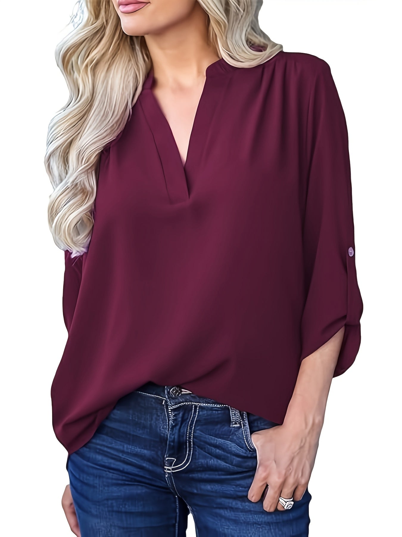 Ta stylowa letnia lniana bluzka łączy w sobie elegancję i wygodę i jest idealnym wyborem na ciepłe dni! Wykonana z lekkiego, oddychającego poliestru, jest wygodna w noszeniu i oferuje luźny krój dla maksymalnego komfortu. Prosty, ale elegancki design sprawia, że jest uniwersalna - idealna do biura, na czas wolny lub na wakacje. Długie rękawy i luźny krój nadają bluzce elegancki, ale swobodny charakter. Dostępna w wielu kolorach, jest niezbędnym elementem każdej letniej garderoby.