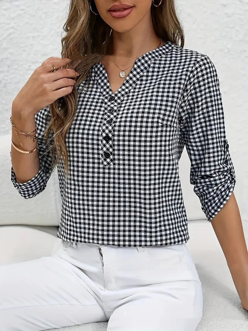 Damska retro koszula w kratę i paski z długim rękawem | Idealna na jesień i zimę