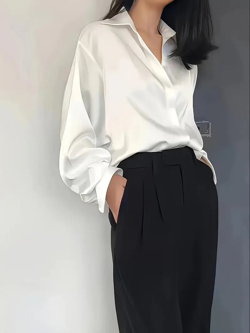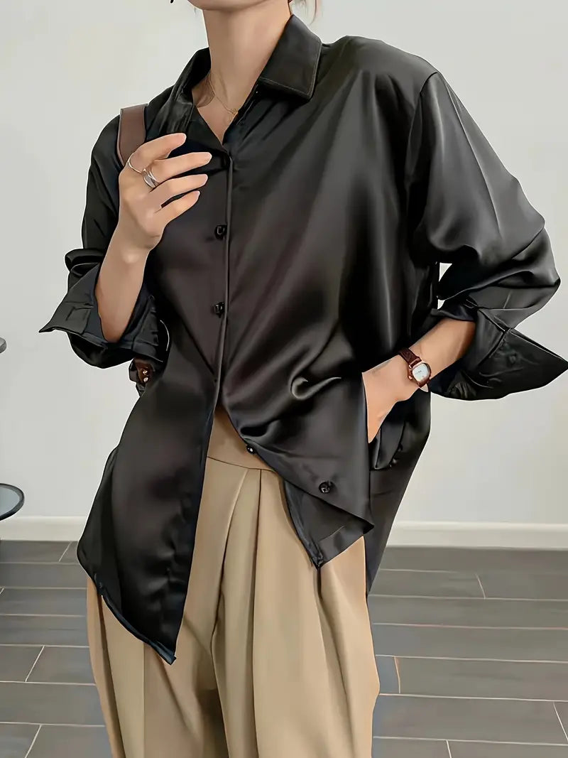 Elegancka jedwabna bluzka damska, codzienna biurowa koszula z długim rękawem zapinana na guziki,